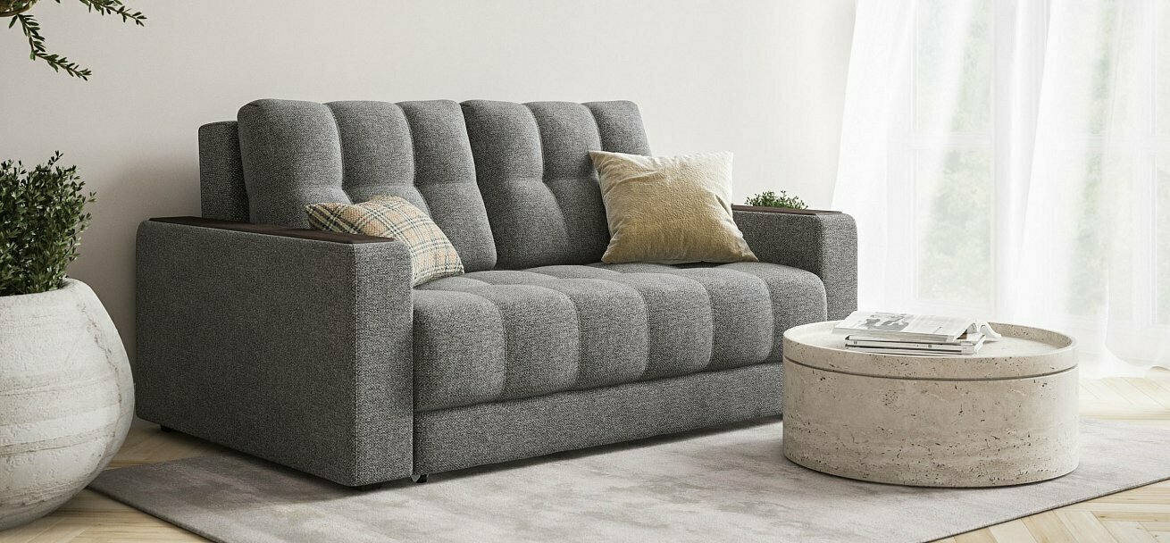 Купить Диван-кровать BOSS Compact, выкатной easy roll, рогожка Malmo серый, 167х112х88 см