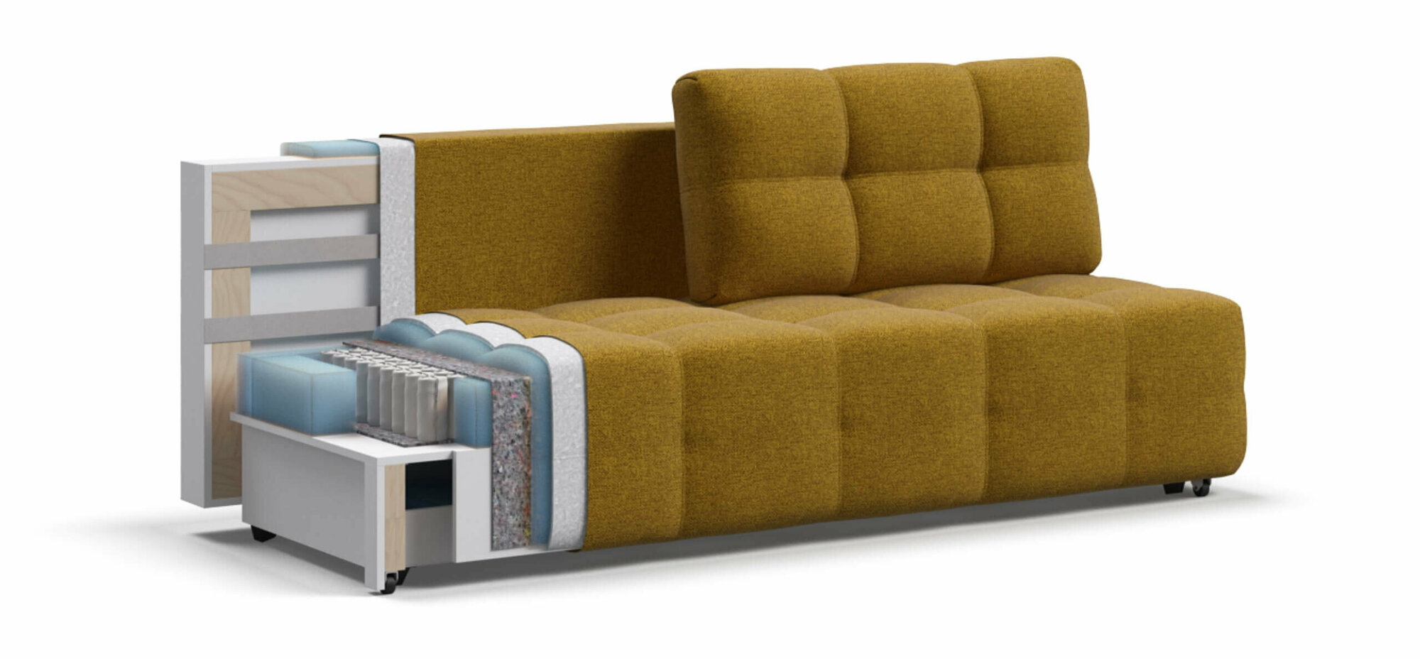 | Особенности | без подлокотников, пружинный блок, раскладная конструкция, с подлокотниками, съемные подушки, ящик для белья |