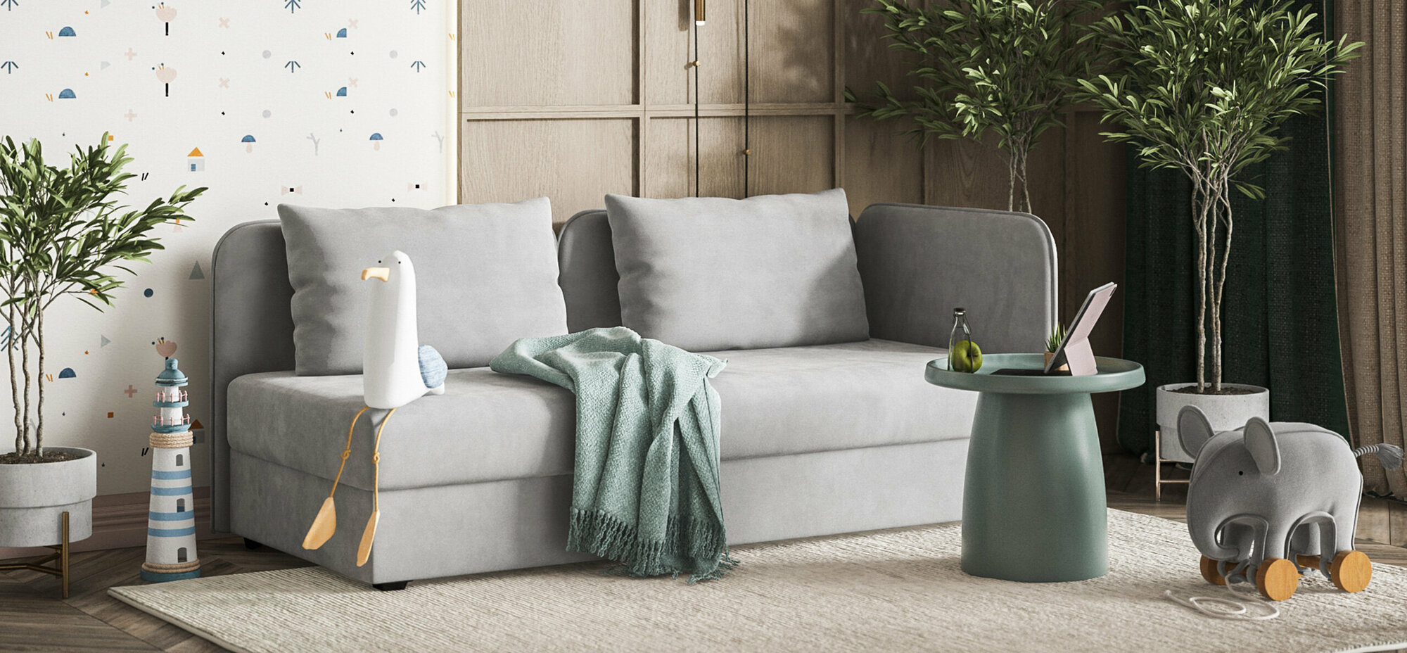 Прямой диван-кровать с ящиком для хранения Boss 2.0, еврокнижка, шенилл IQ кварц, 235x110x90 см