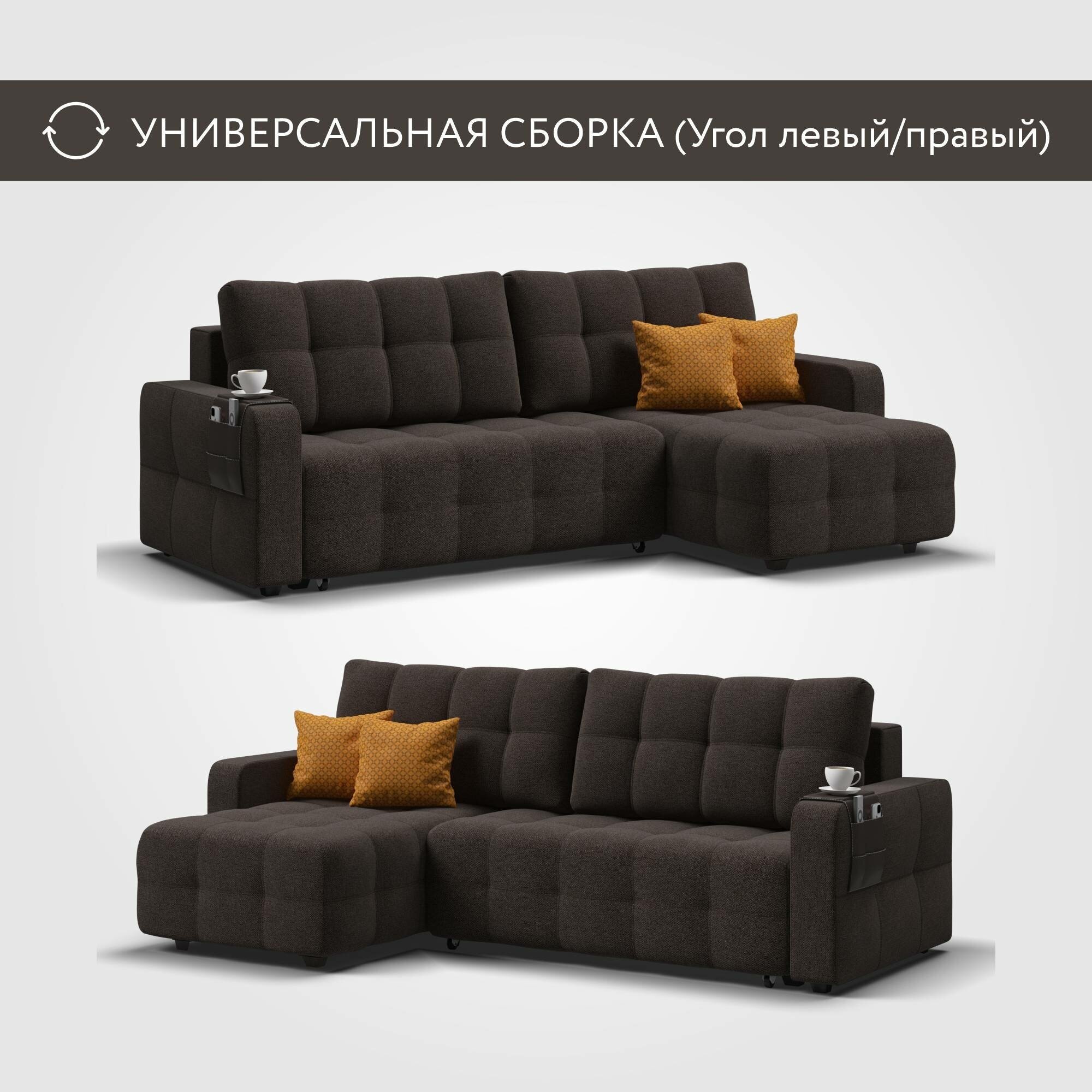 Угловой диван-кровать Dandy Euro SE с ящиком для хранения, еврокнижка, рогожка Malmo шоколад, 235х165х93 см