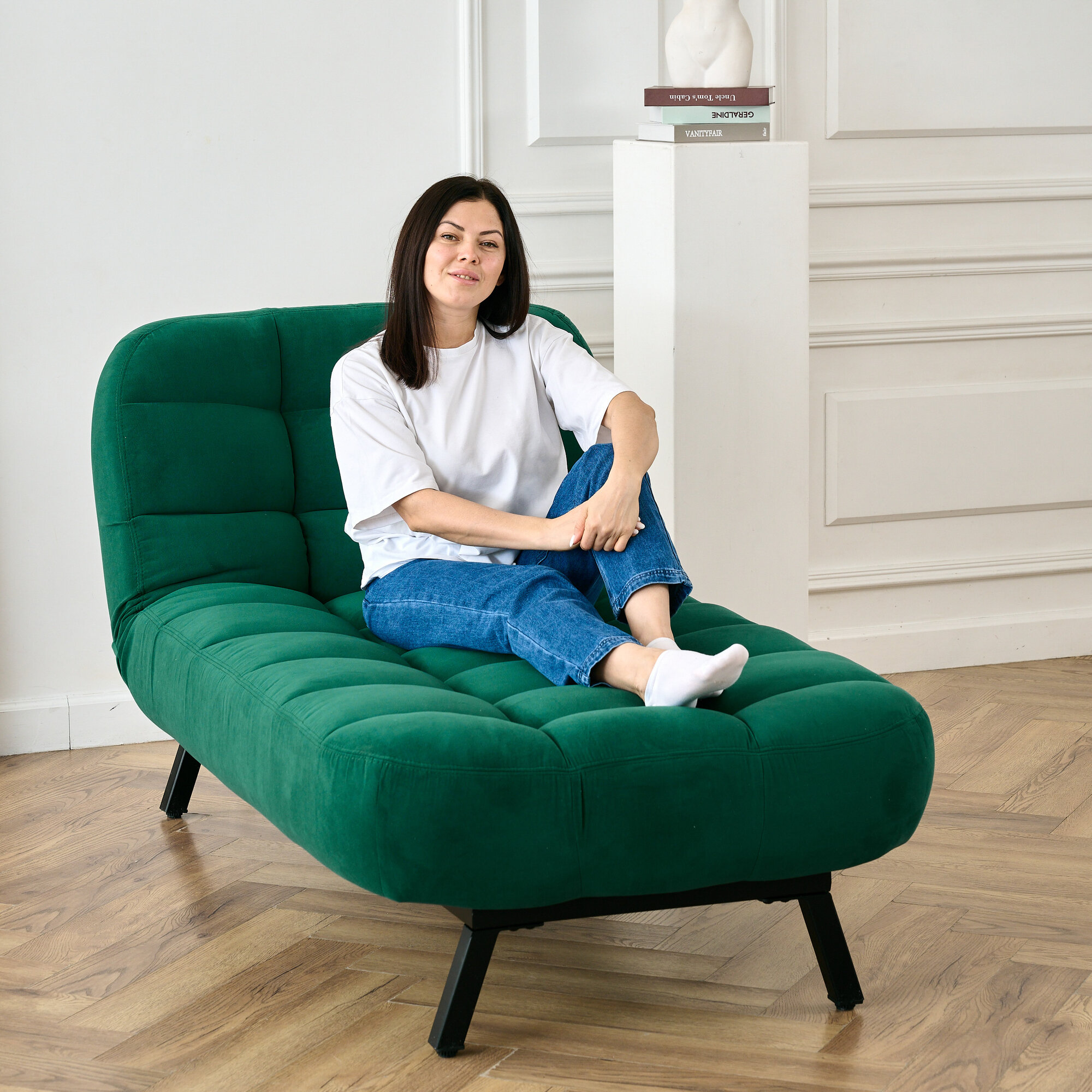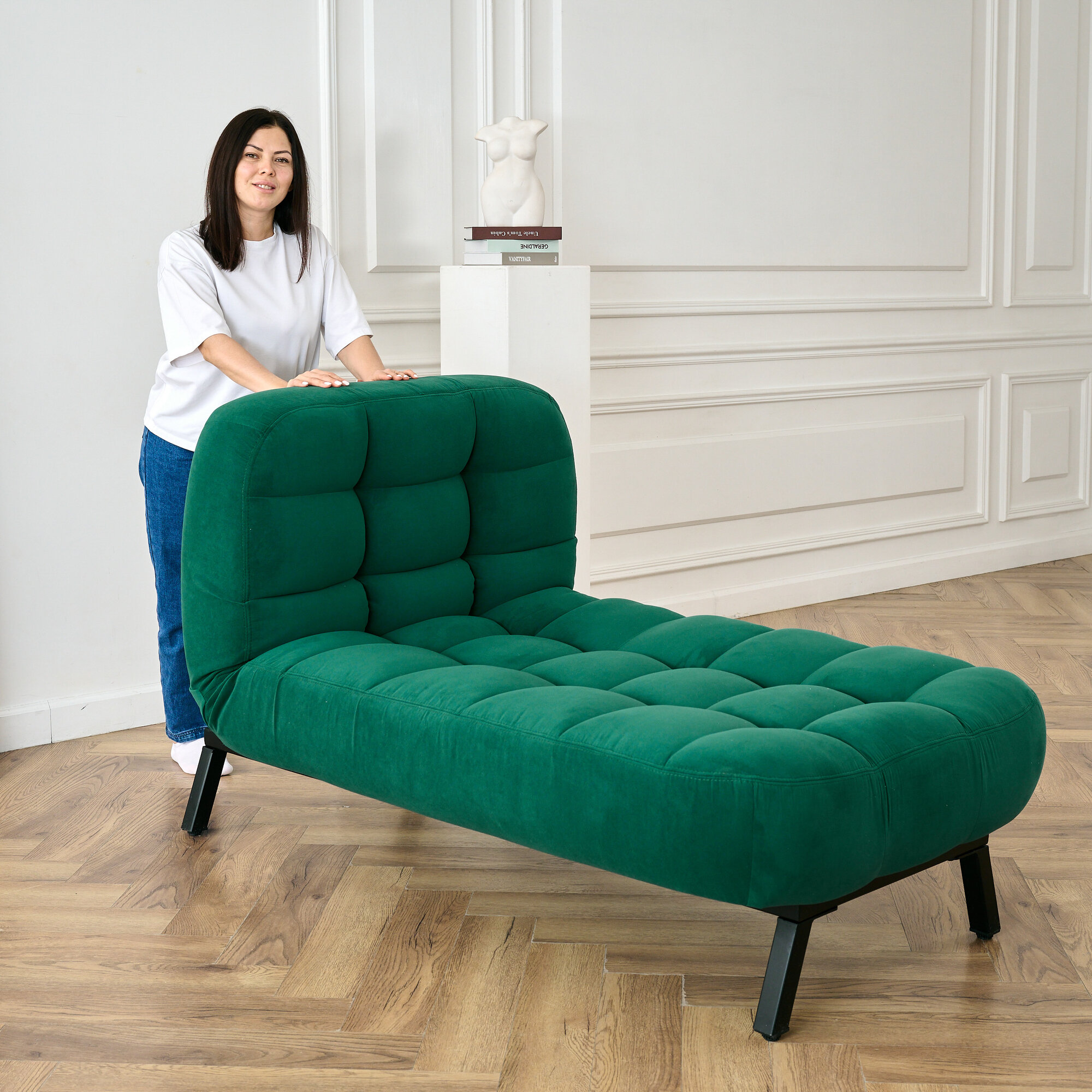 Купить Кушетка оттоманка Brendoss 310 лофт раскладная регулируемая клик-кляк на металлокаркасе материал износостойкий велюр, изумрудный, 95х170х94 см