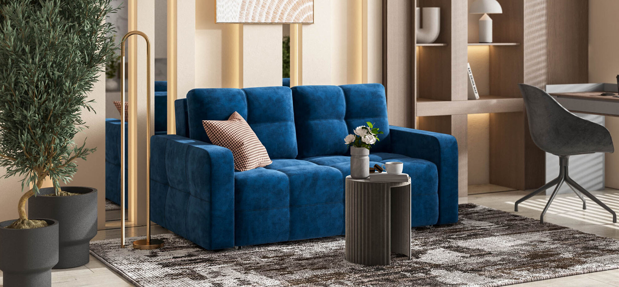 Диван-кровать Dandy Compact, механизм выкатной easy roll, рогожка Malmo синий, 167х112х88 см