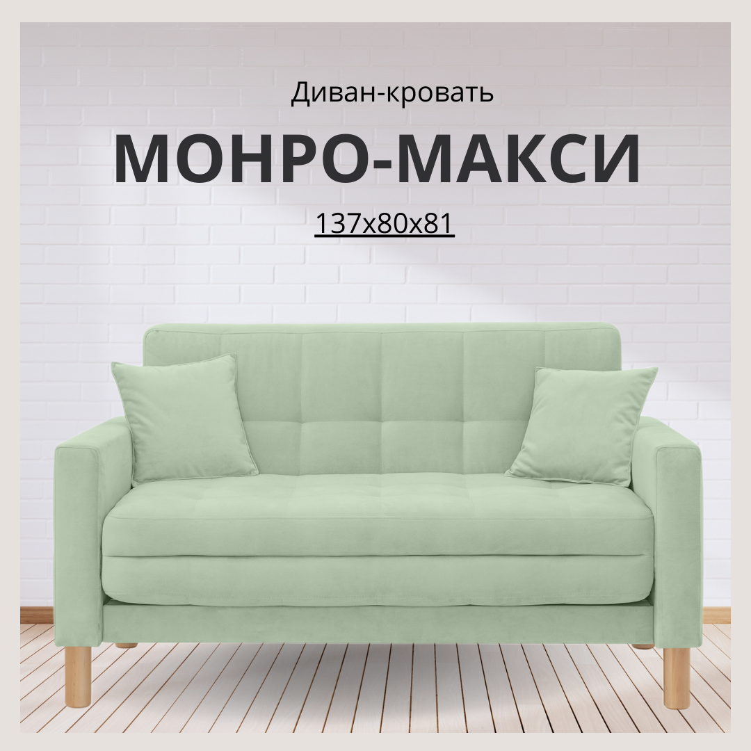 Купить Диван-кровать Монро-макси, прямой, 137*80*81, спальное 120*194, велюр мятный, Велутто 14