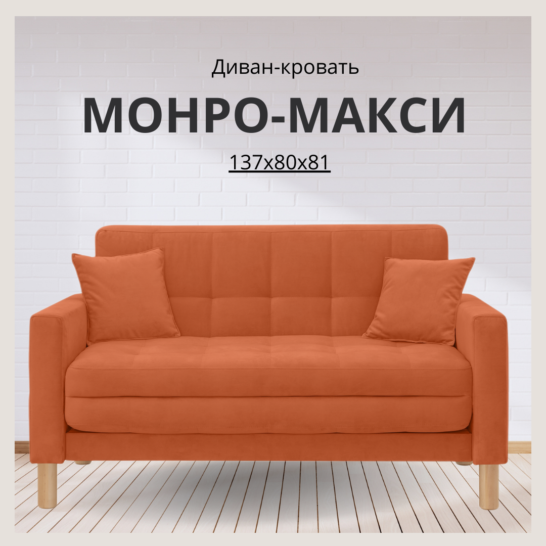 Купить Диван-кровать Монро-макси, прямой, 137*80*81, спальное 120*194, велюр оранжевый, Велутто 39