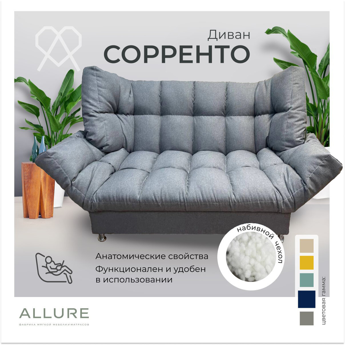 СохранитьДиван раскладной прямой "Сорренто", 210х100х100, ALLURE, велюр серый, механизм Клик-кляк, подходит для спальни, детской, гостиной, прихожей, дачи, сада, балкона интересное: