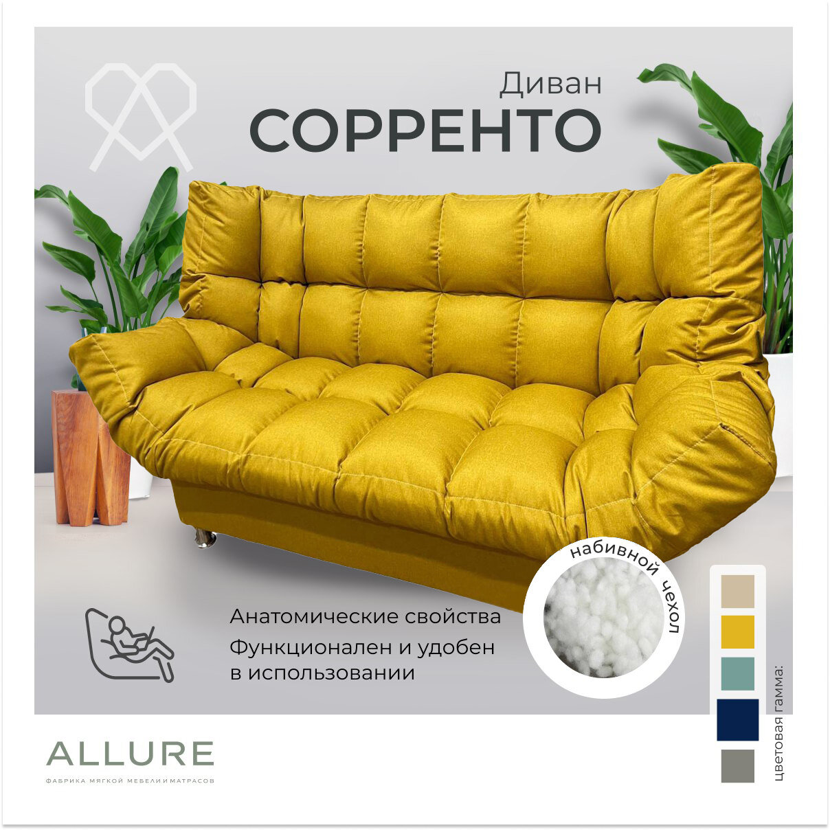 СохранитьДиван раскладной прямой "Сорренто", 210х100х100, ALLURE, велюр желтый, механизм Клик-кляк, подходит для спальни, детской, гостиной, прихожей, дачи, сада, балкона интересное: