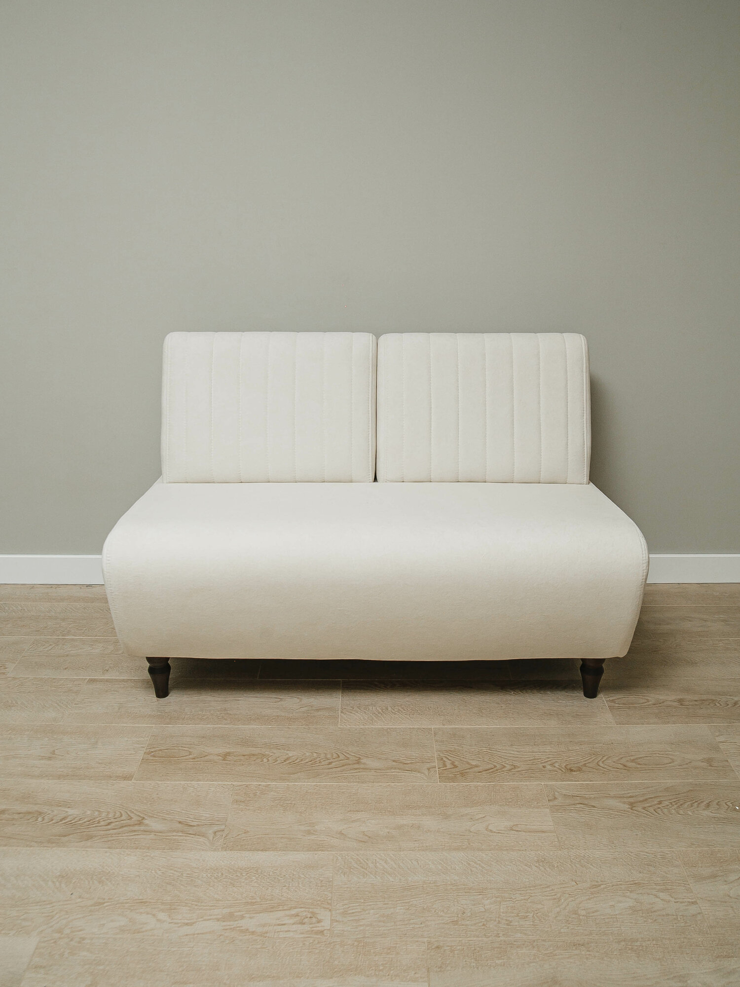 Прямой маленький диван "Ромео" без подлокотников в офис, в салон красоты, гостиную, на кухню, светло-серый