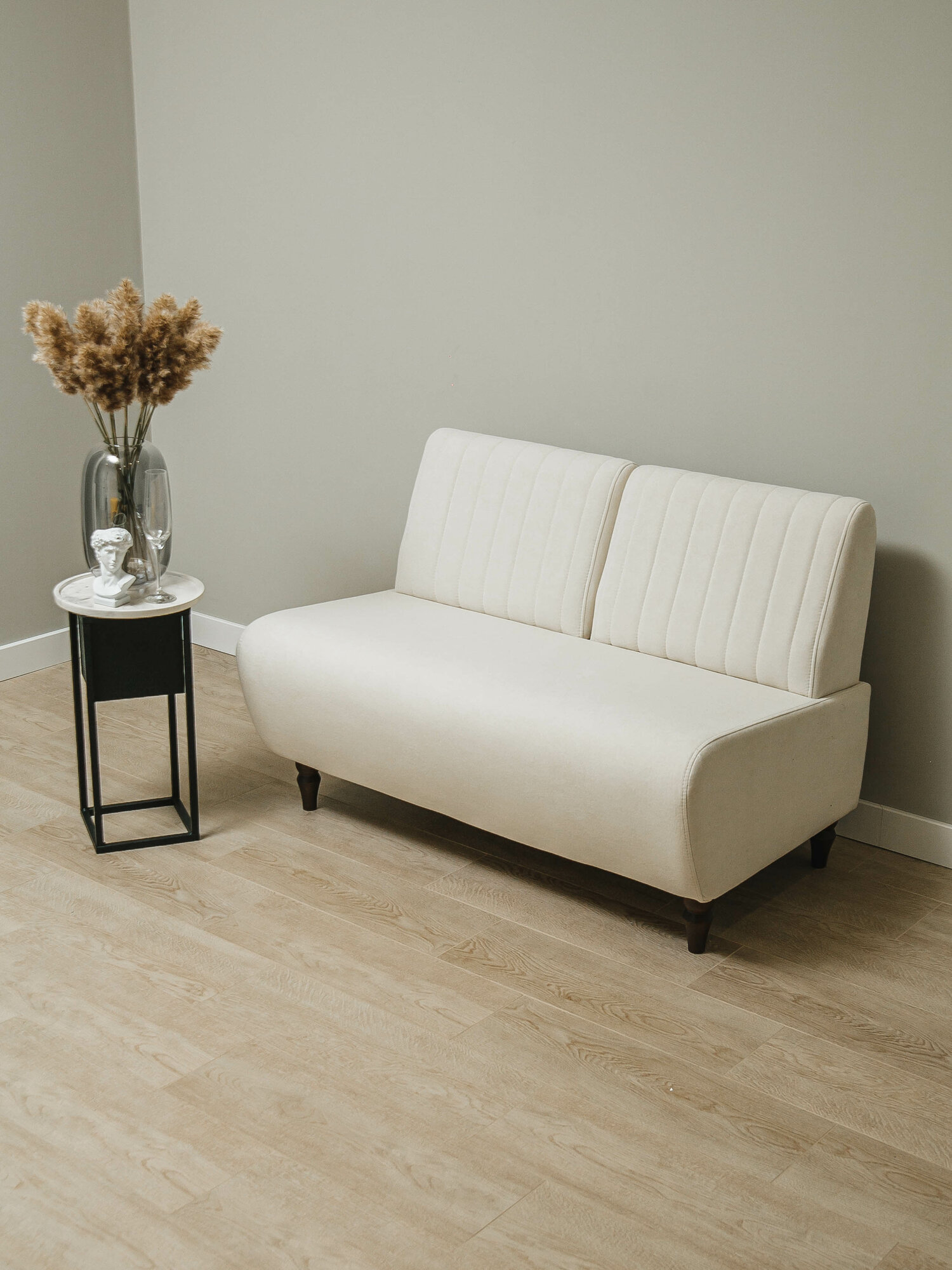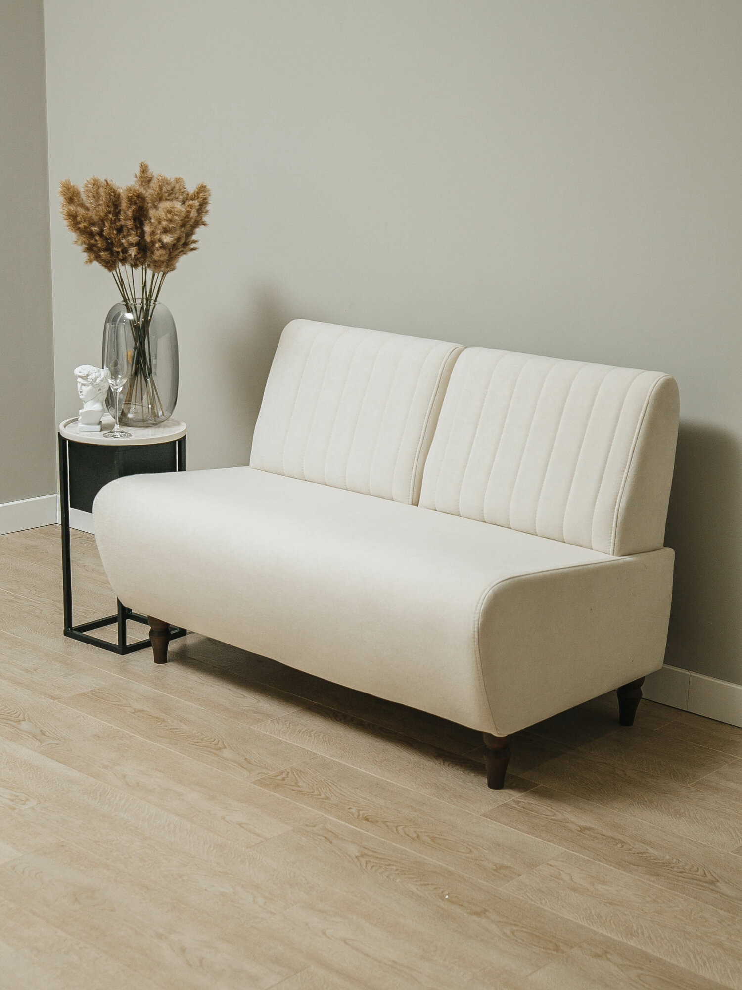 Прямой маленький диван "Ромео" без подлокотников в офис, в салон красоты, гостиную, на кухню, кремовый