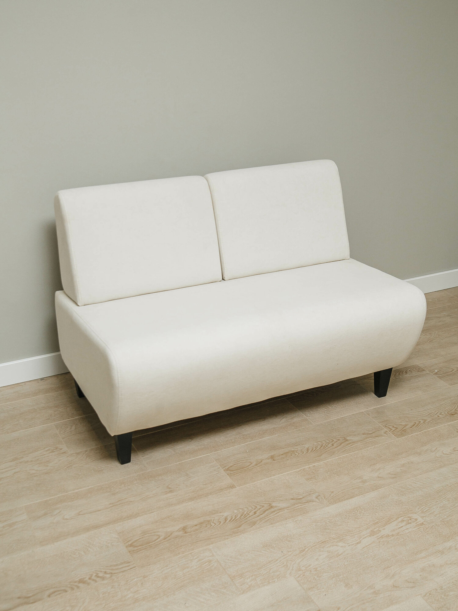 Прямой маленький диван "Ромео" без подлокотников в офис, в салон красоты, гостиную, на кухню, кремовый