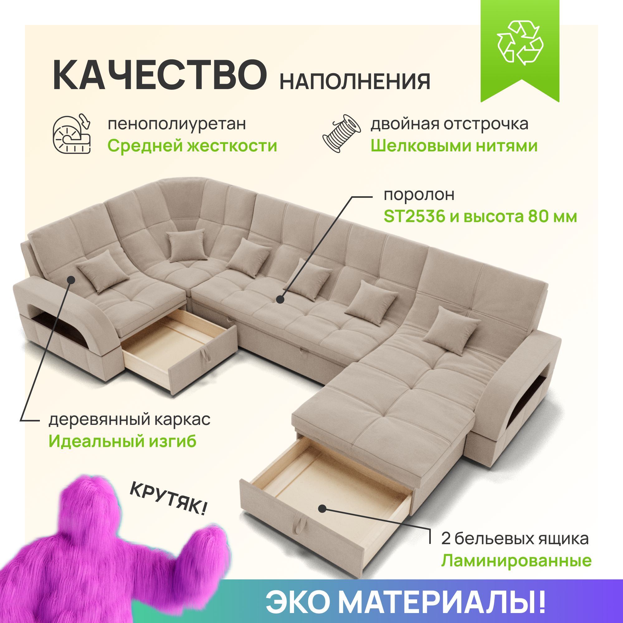 Купить Модульный диван, Майами-4 ,Велютта люкс 07 премиум класса YORCOM,350x135x97,Бежевый. Велюр,ППУ,ДВП,Дерево,механизм Венеция.