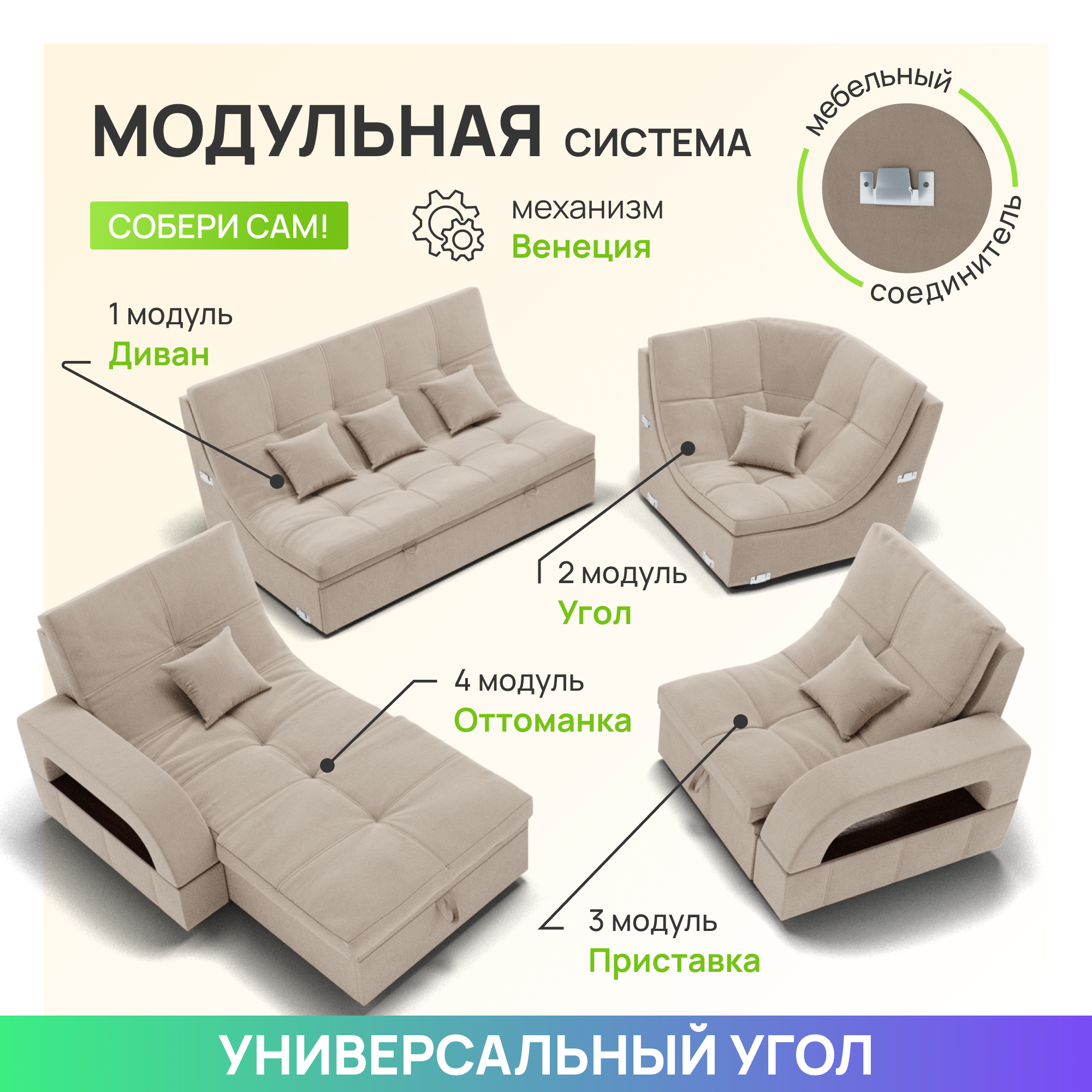 СохранитьМодульный диван, Майами-4 ,Велютта люкс 07 премиум класса YORCOM,350x135x97,Бежевый. Велюр,ППУ,ДВП,Дерево,механизм Венеция. интересное: