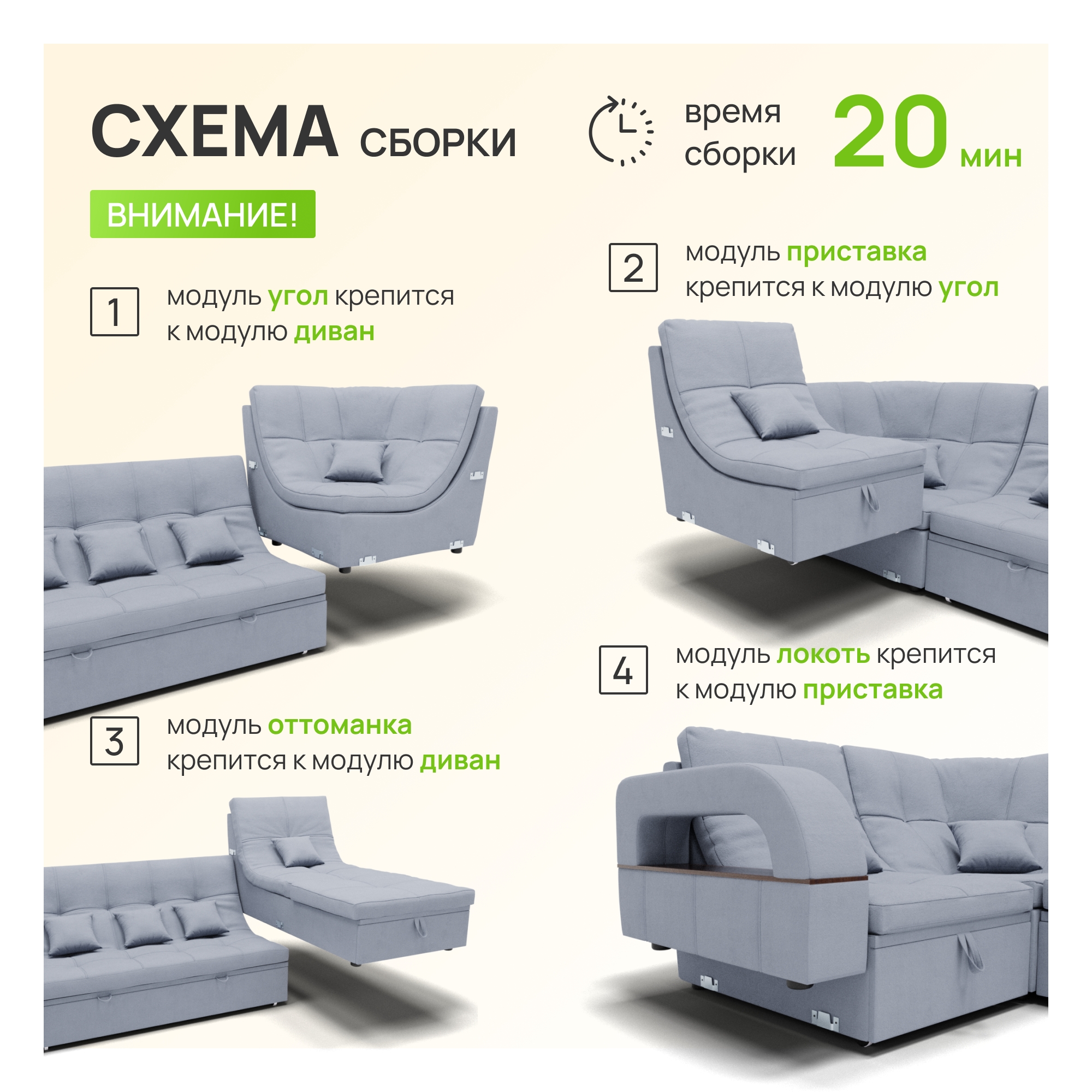 | Особенности | модульный, раскладная конструкция, с подлокотниками, ящик для белья |