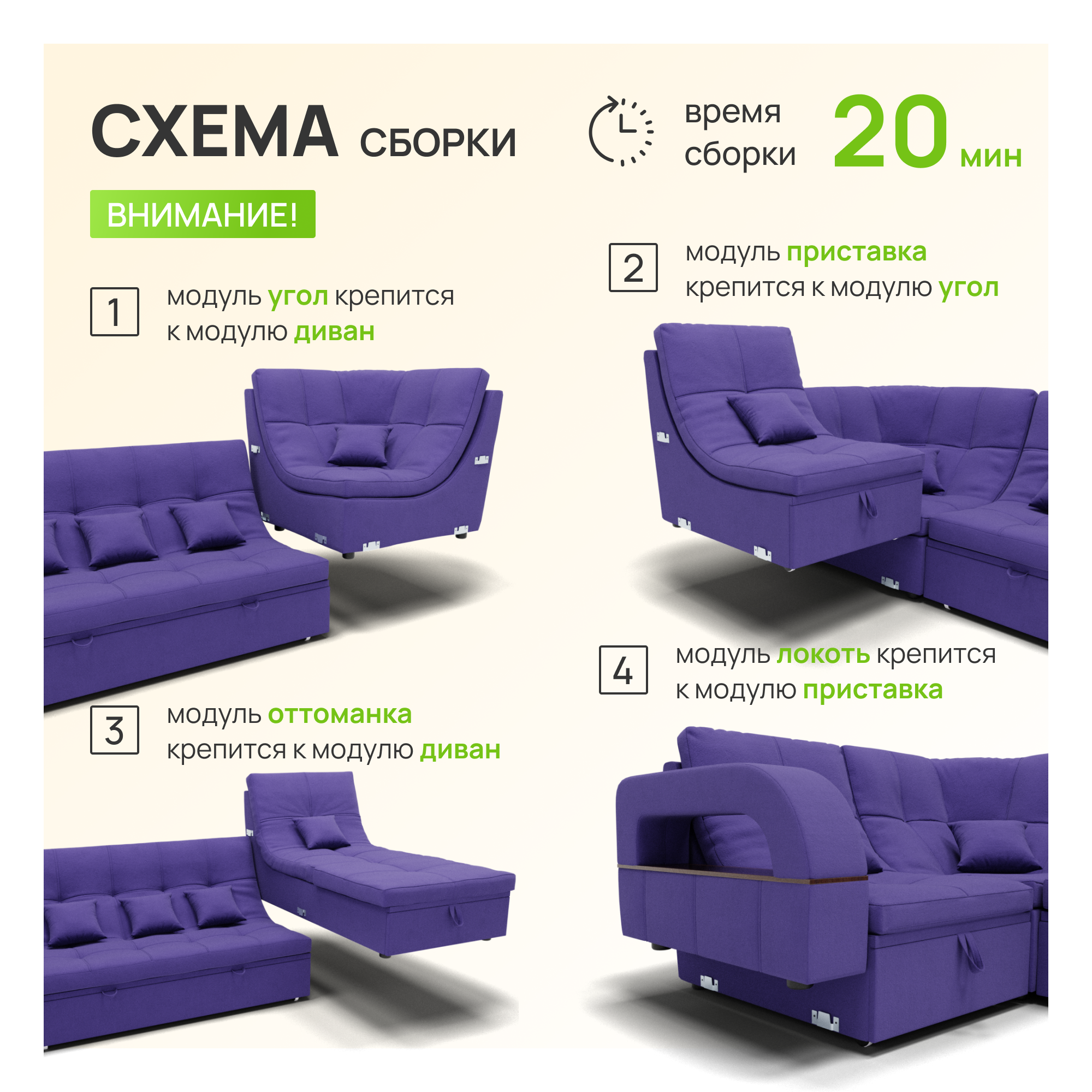 СохранитьМодульный диван, Майами-4 ,Велютта люкс 46 премиум класса YORCOM,350x135x97,Фиолетовый. Велюр,ППУ,ДВП,Дерево,механизм Венеция. интересное:
