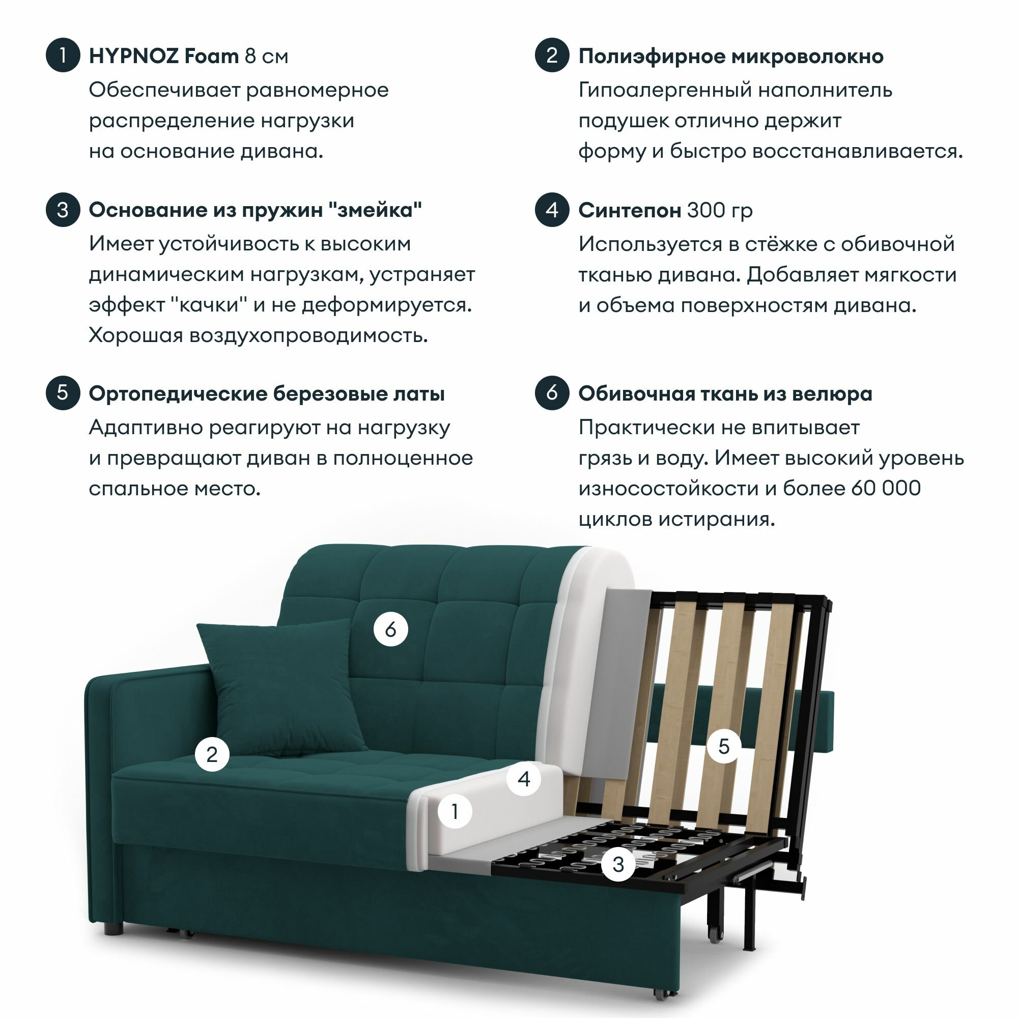Диван-кровать Аккордеон HYPNOZ Grenada 140, Зеленый интересное: