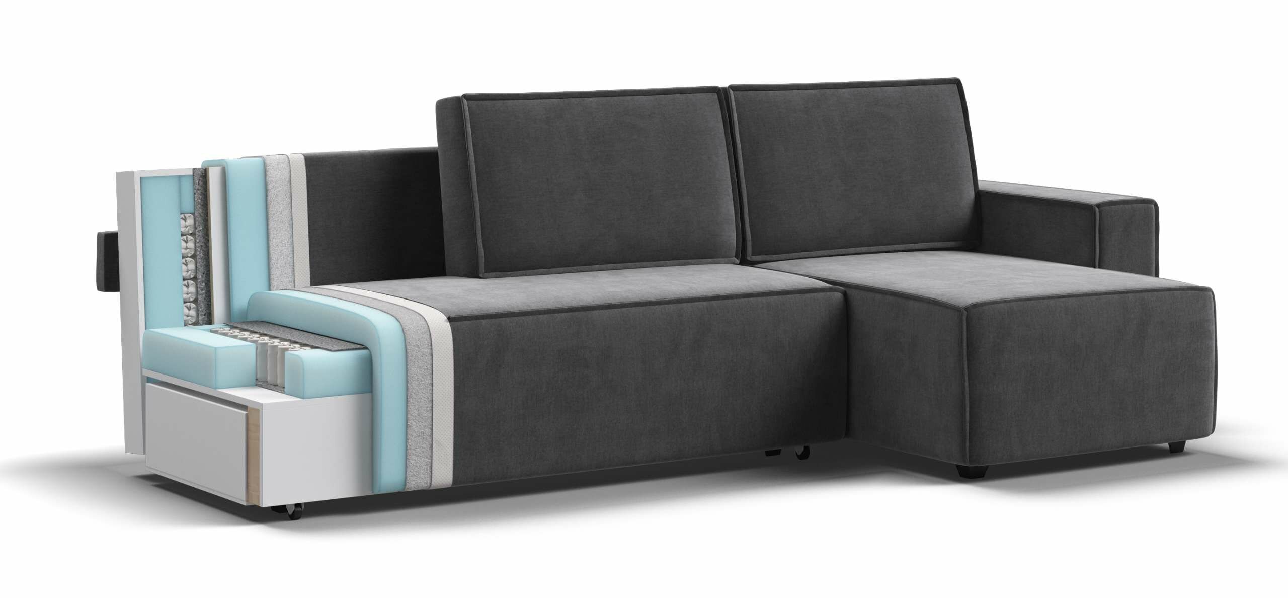 Угловой диван Много мебели Nord 2.0, велюр Monolit сталь, 282x150x90 см