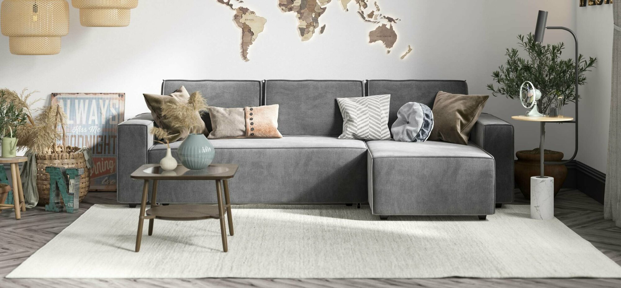 Угловой диван Много мебели Nord 2.0, велюр Alkantara серый, 282x150x90 см