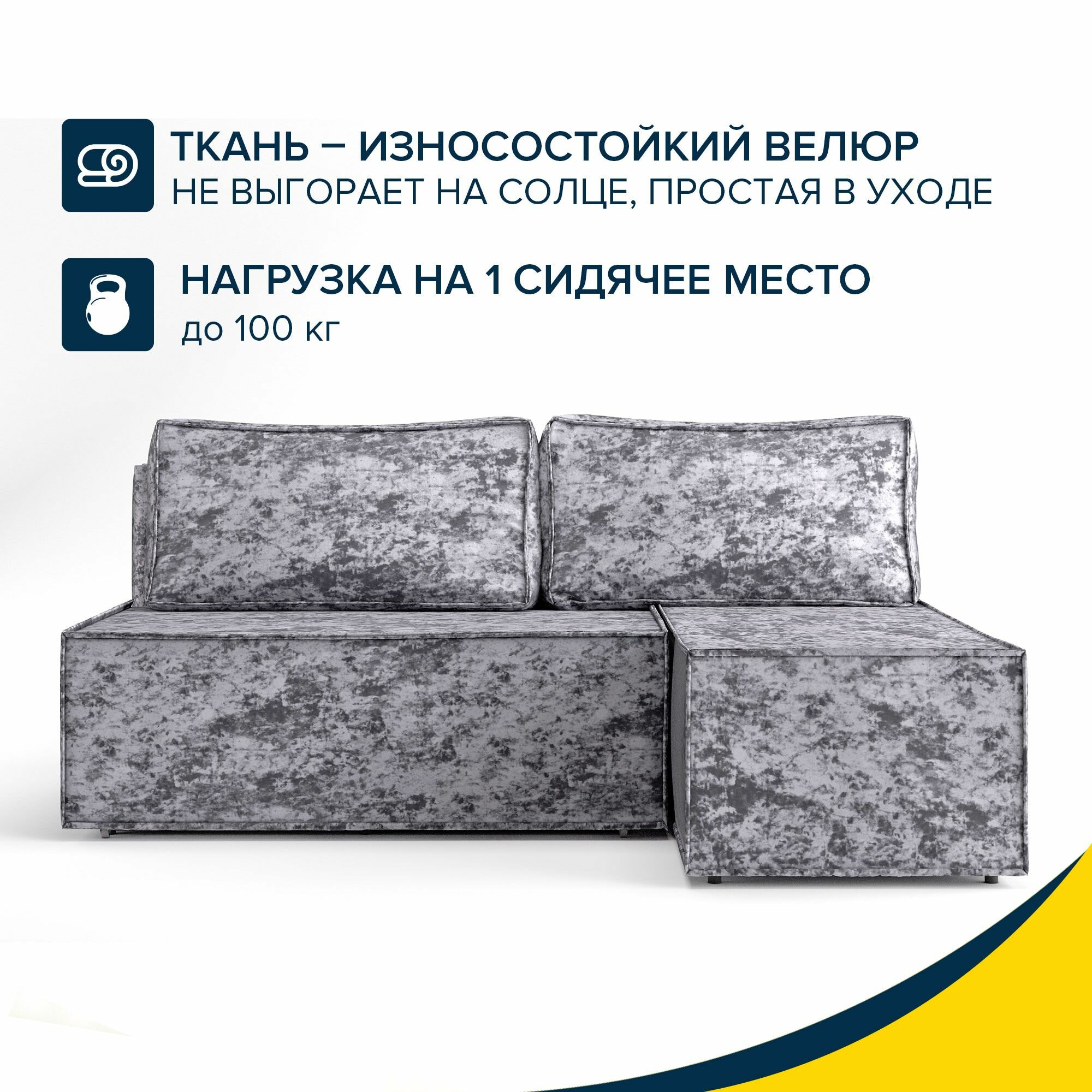 Диван угловой Beneli киото, светло-серый, велюр, механизм Еврокнижка, 196х133х75 см, 1шт интересное: