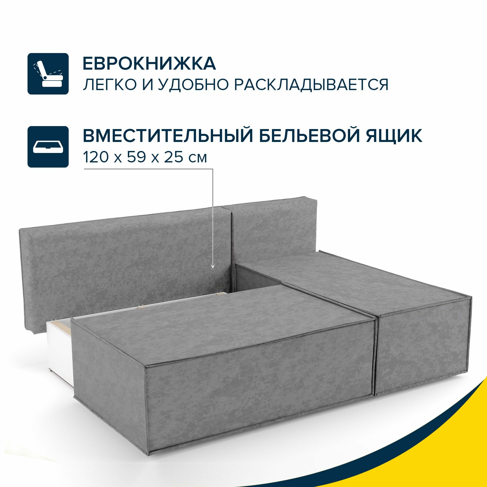 Диван угловой Beneli киото, темно-серый, велюр, механизм Еврокнижка, 196х133х75 см, 1шт интересное: