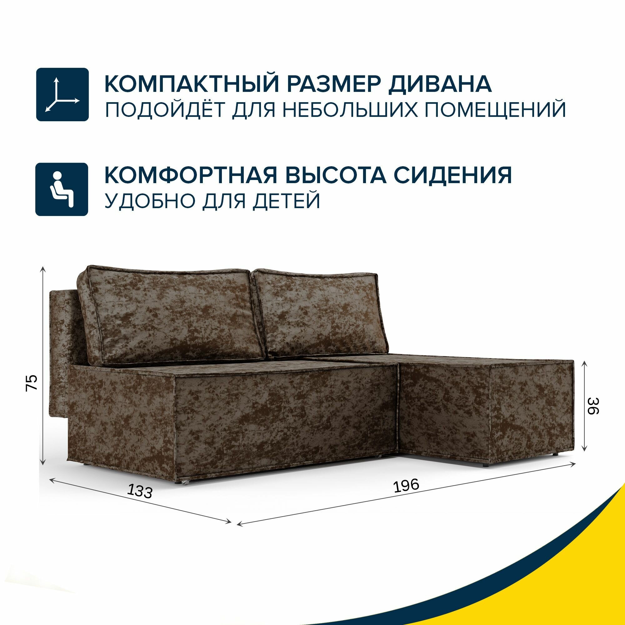Диван угловой Beneli киото, коричневый, велюр, механизм Еврокнижка, 196х133х75 см, 1шт интересное: