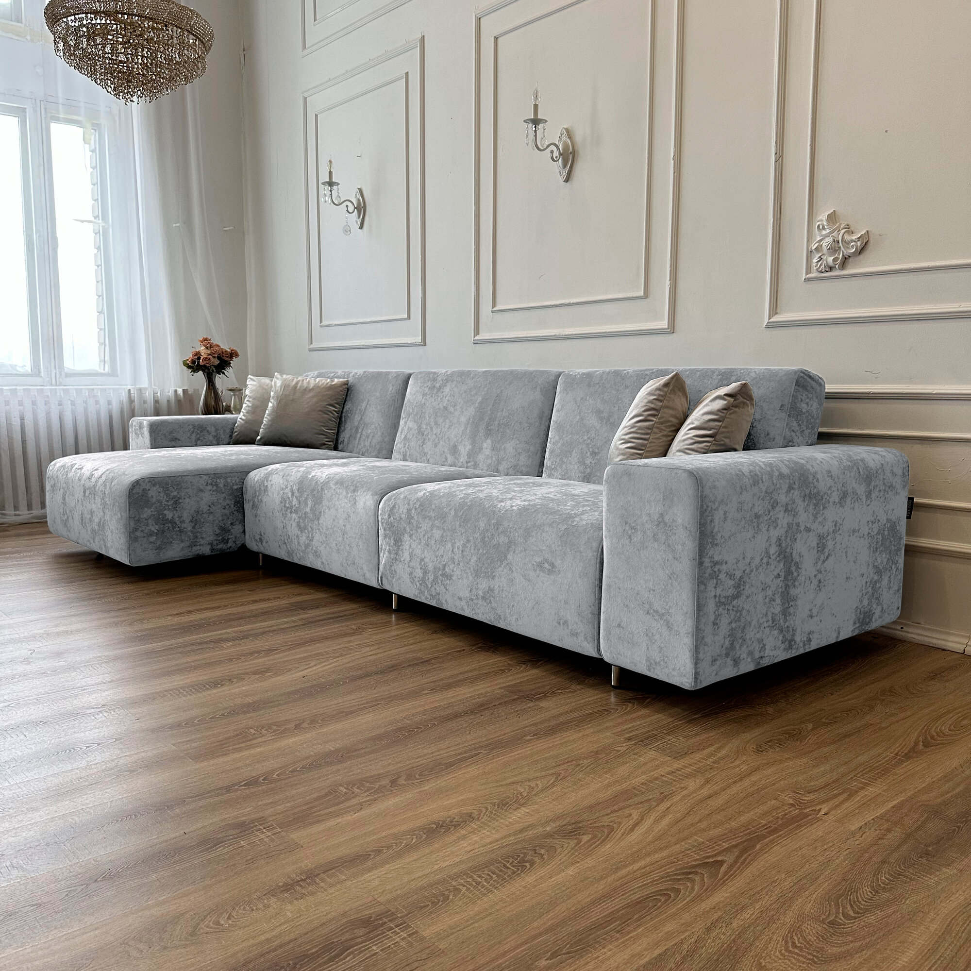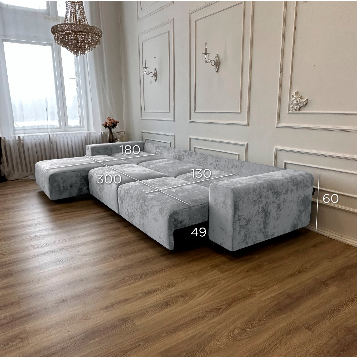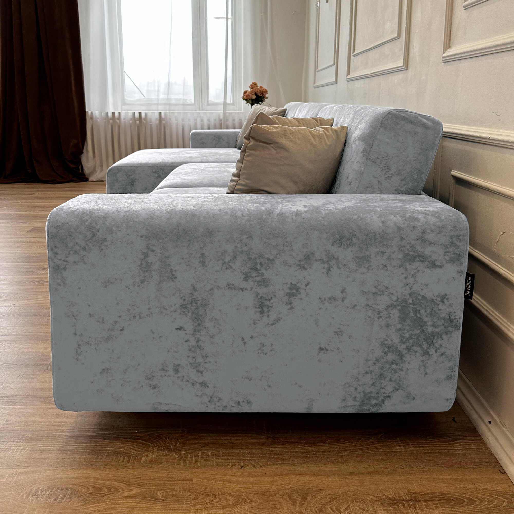 Диван-кровать Redsofa Аурис 360 см cеребристый Ocean. Раскладной угловой диван со съемными чехлами, для дома и офиса.