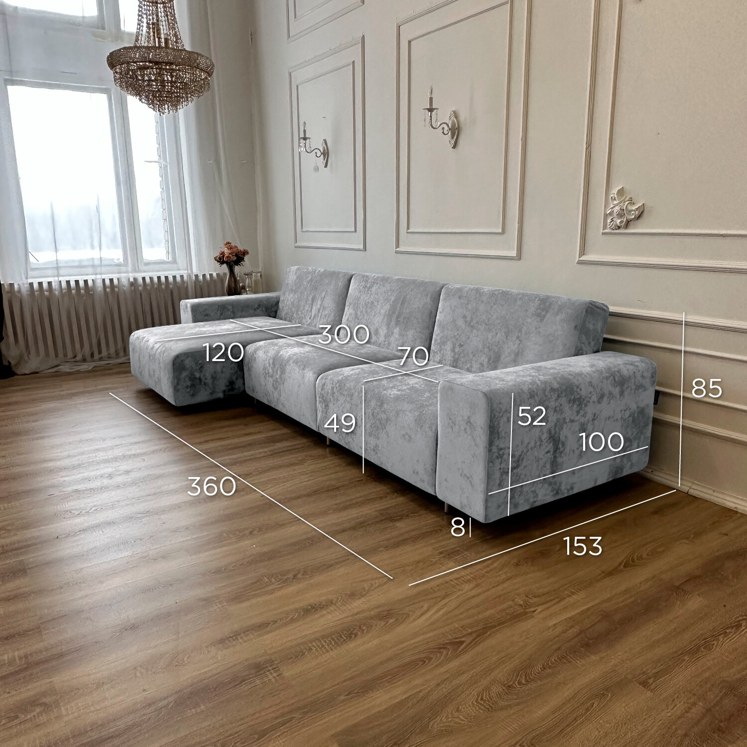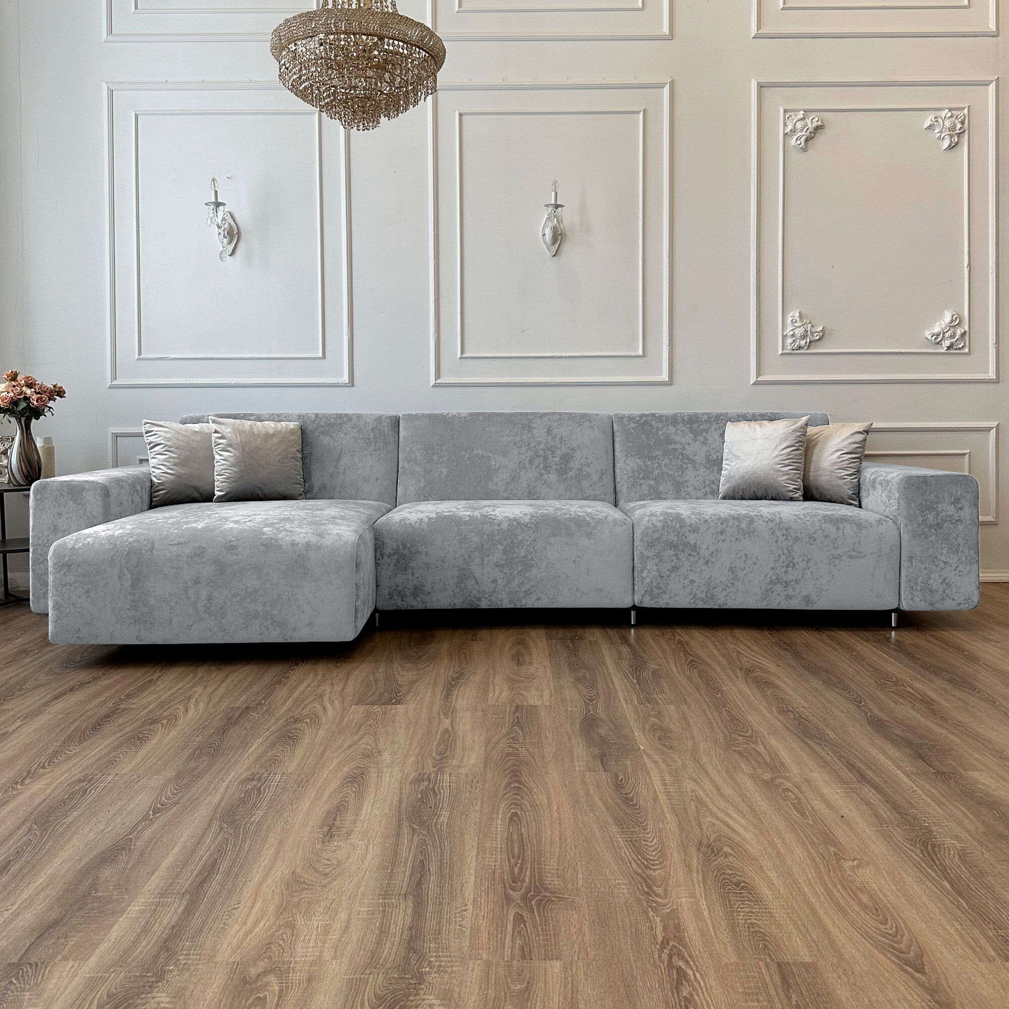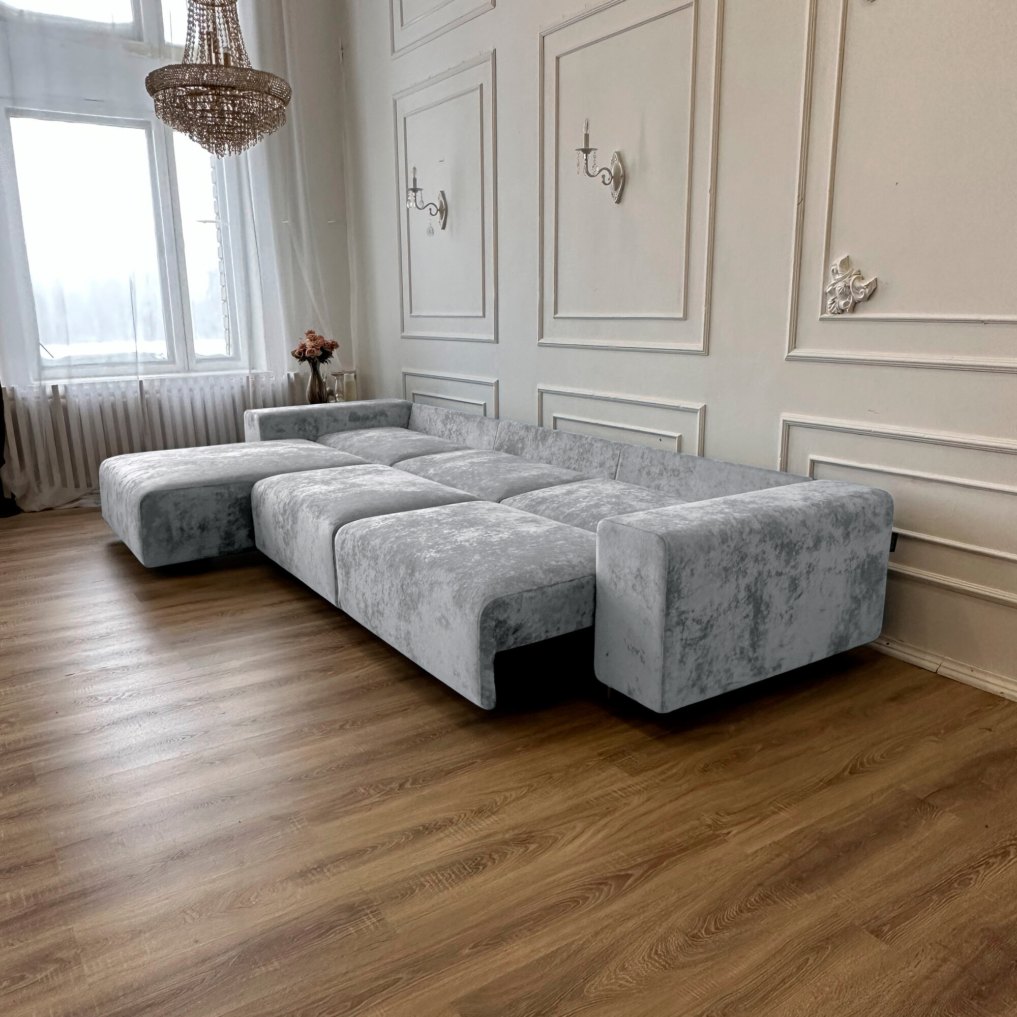 Диван-кровать Redsofa Аурис 360 см cеребристый Ocean. Раскладной угловой диван со съемными чехлами, для дома и офиса.