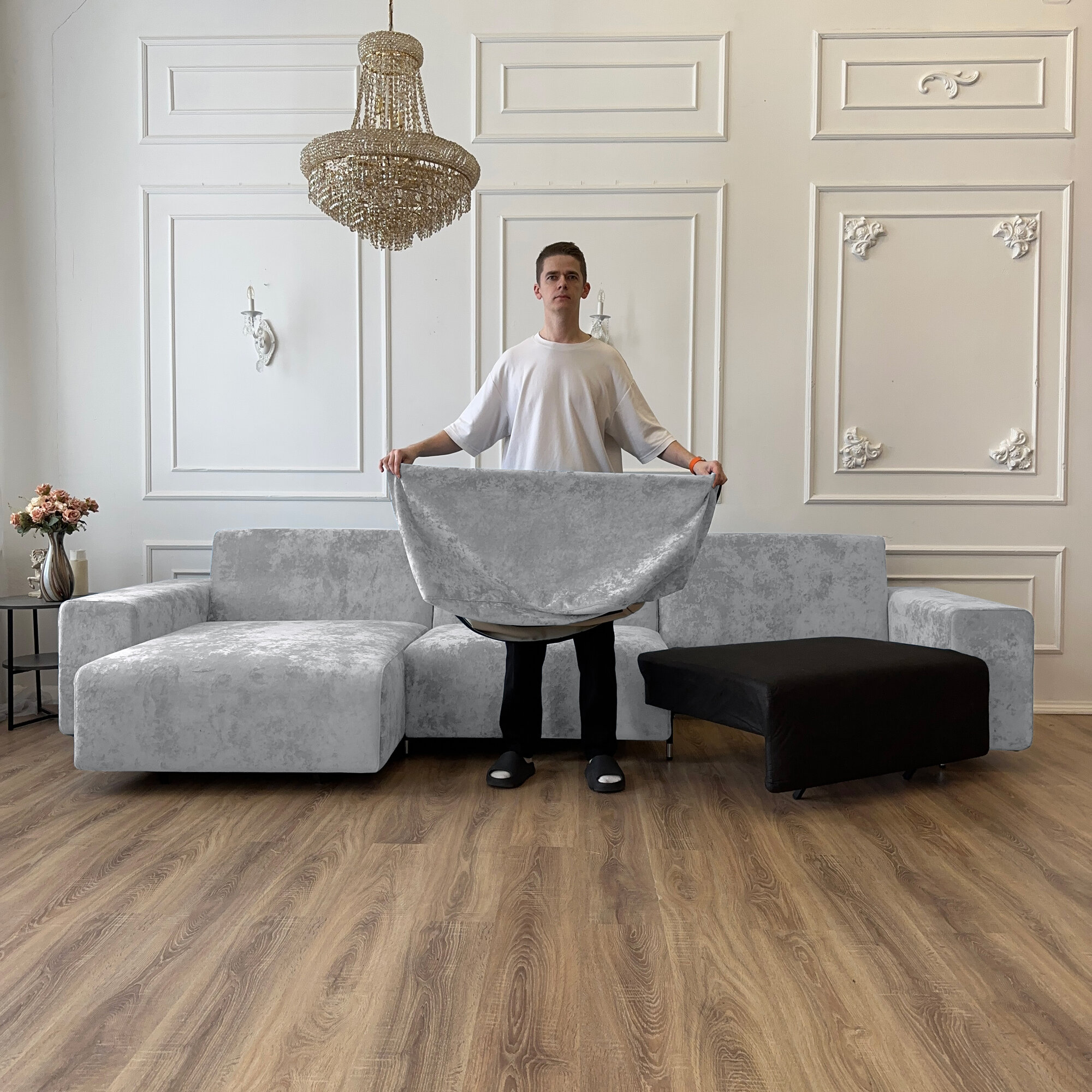 Диван-кровать Redsofa Аурис 360 см светло-серый Teddi. Раскладной угловой диван со съемными чехлами Редсофа, для дома и офиса (Мебельный гарнитур бытового назначения)