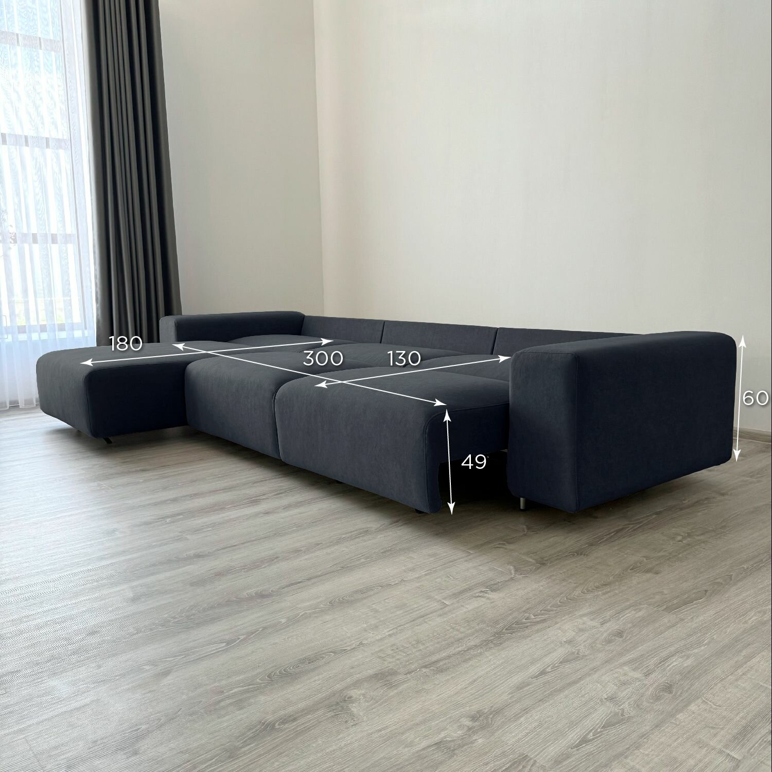 Диван-кровать Redsofa Аурис 360 см графит Teddi. Раскладной угловой диван со съемными чехлами Редсофа, для дома и офиса (Мебельный гарнитур бытового назначения)