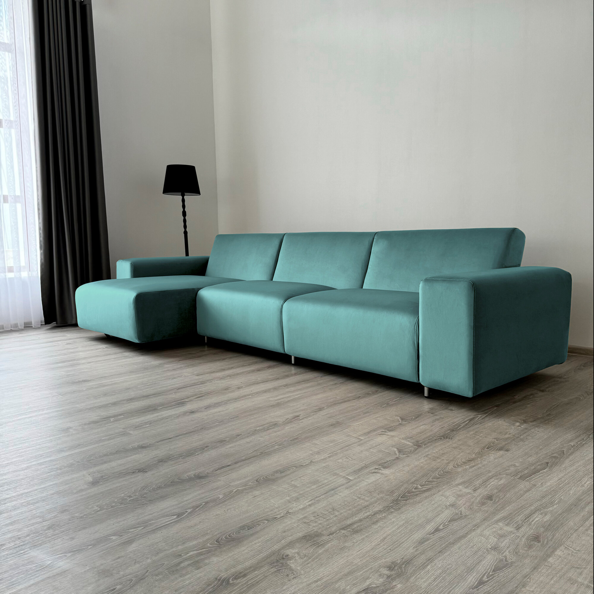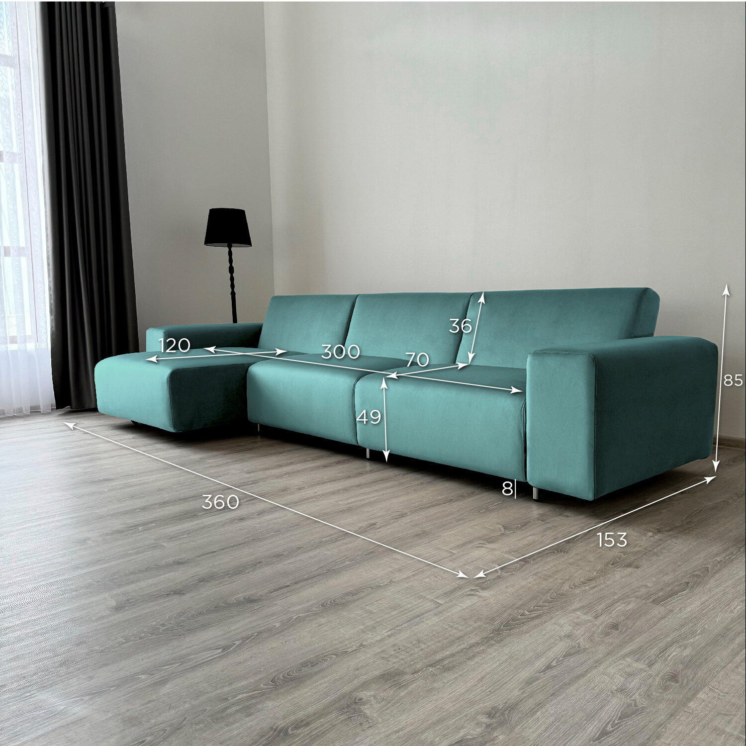 Диван-кровать Redsofa Аурис 360 см аквамарин Ocean. Раскладной угловой диван со съемными чехлами, для дома и офиса.