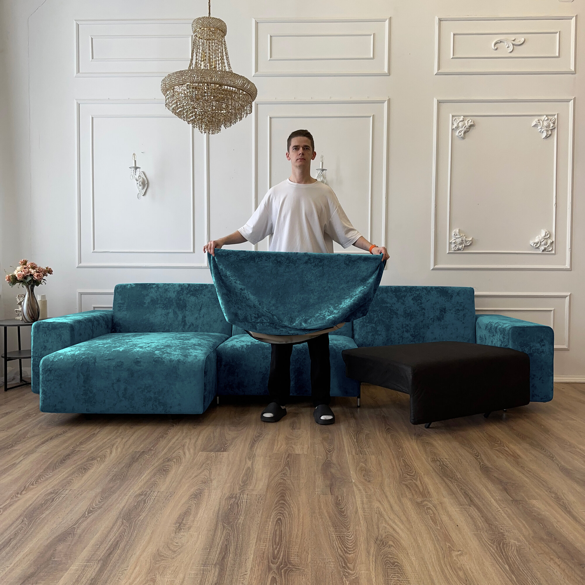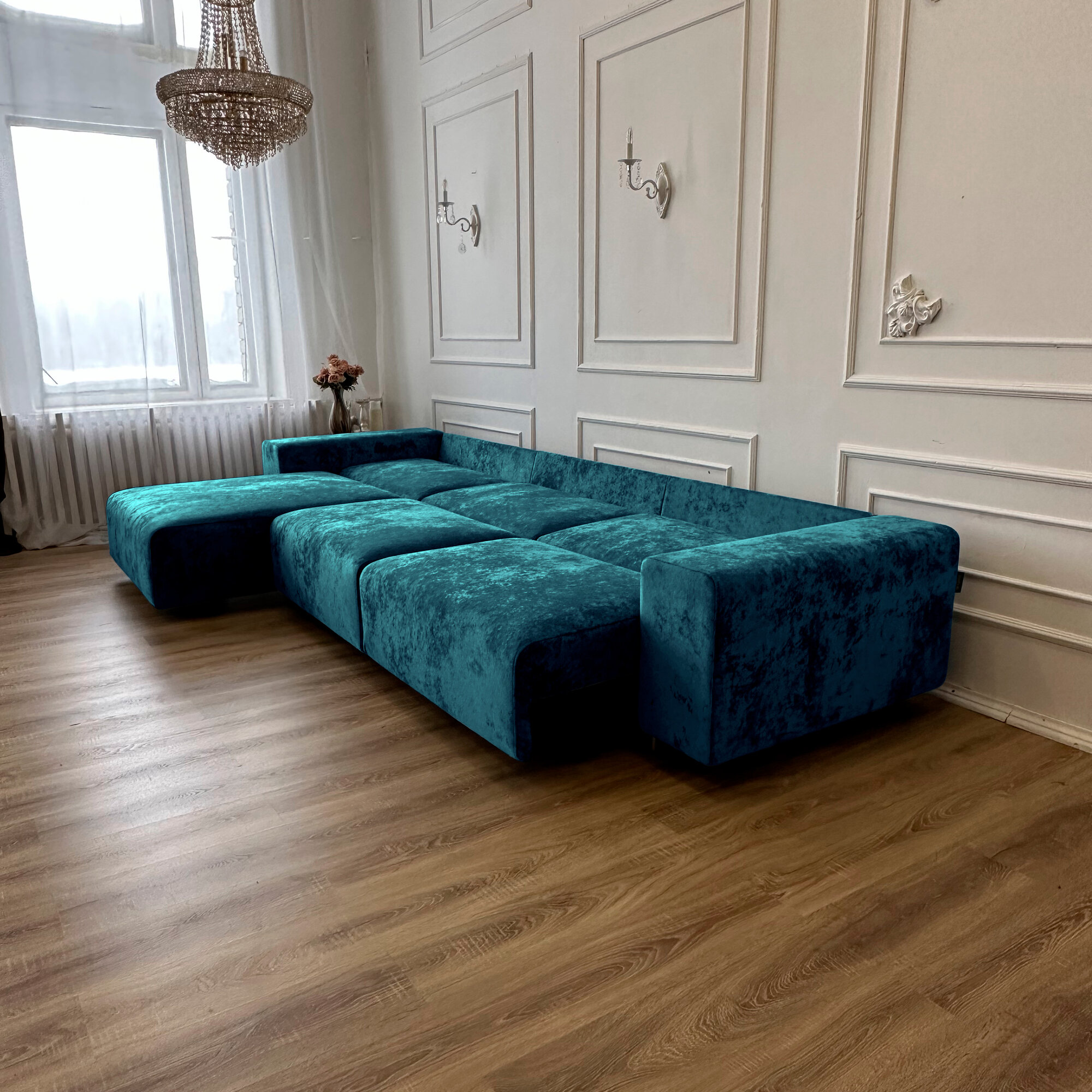 СохранитьДиван-кровать Redsofa Аурис 360 см аквамарин Ocean. Раскладной угловой диван со съемными чехлами, для дома и офиса. интересное: