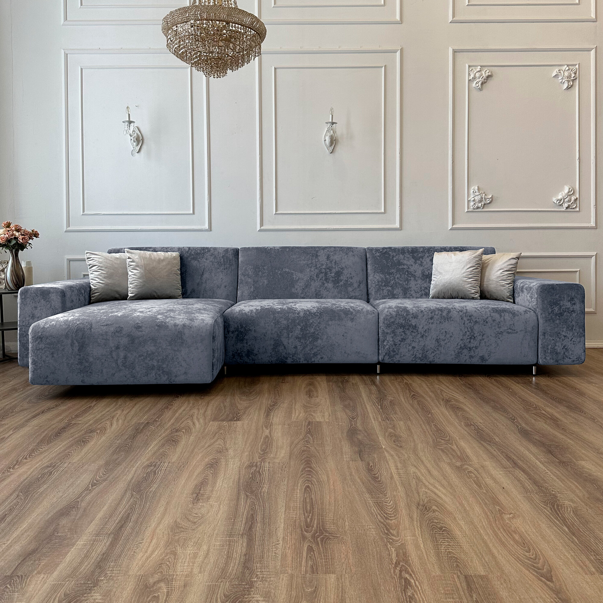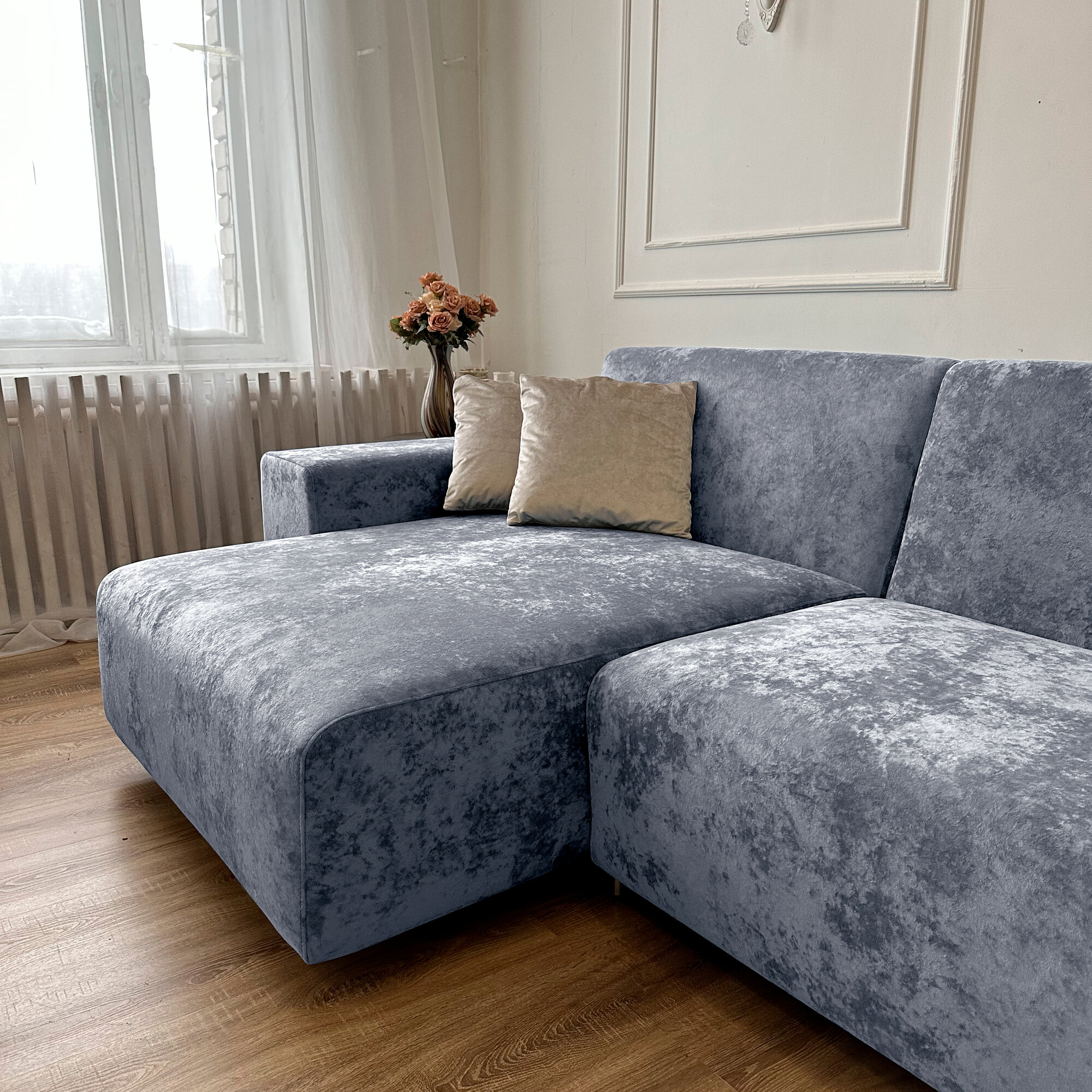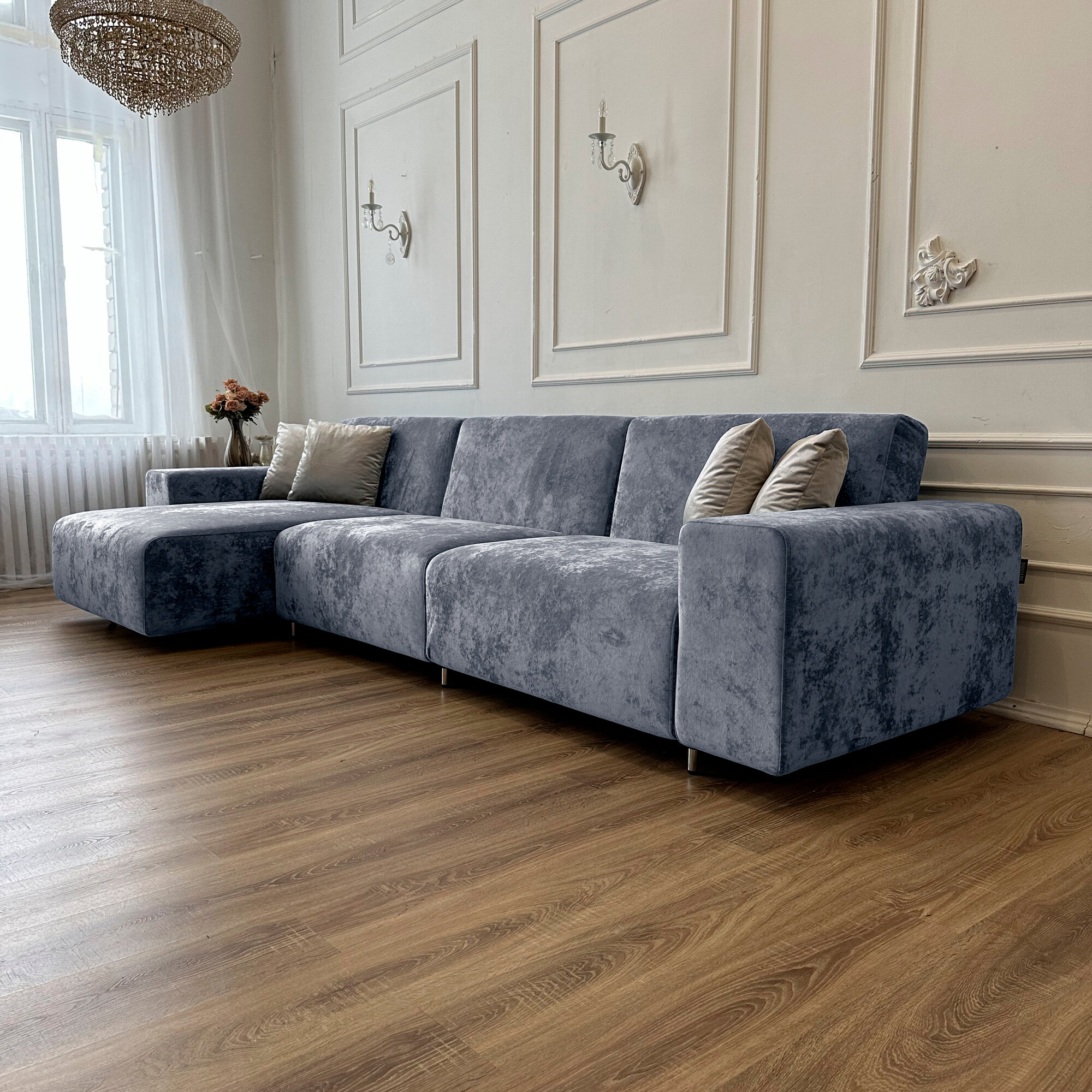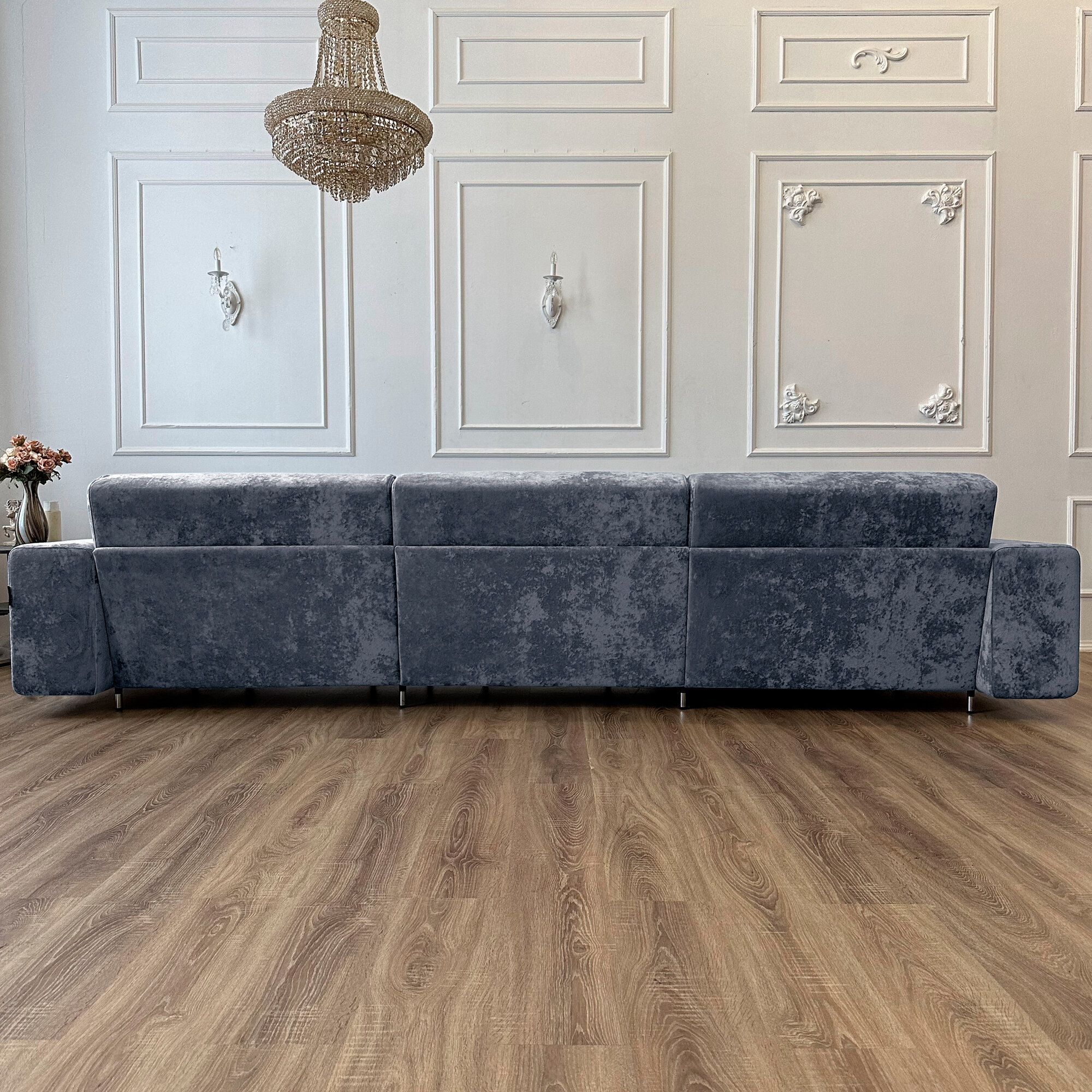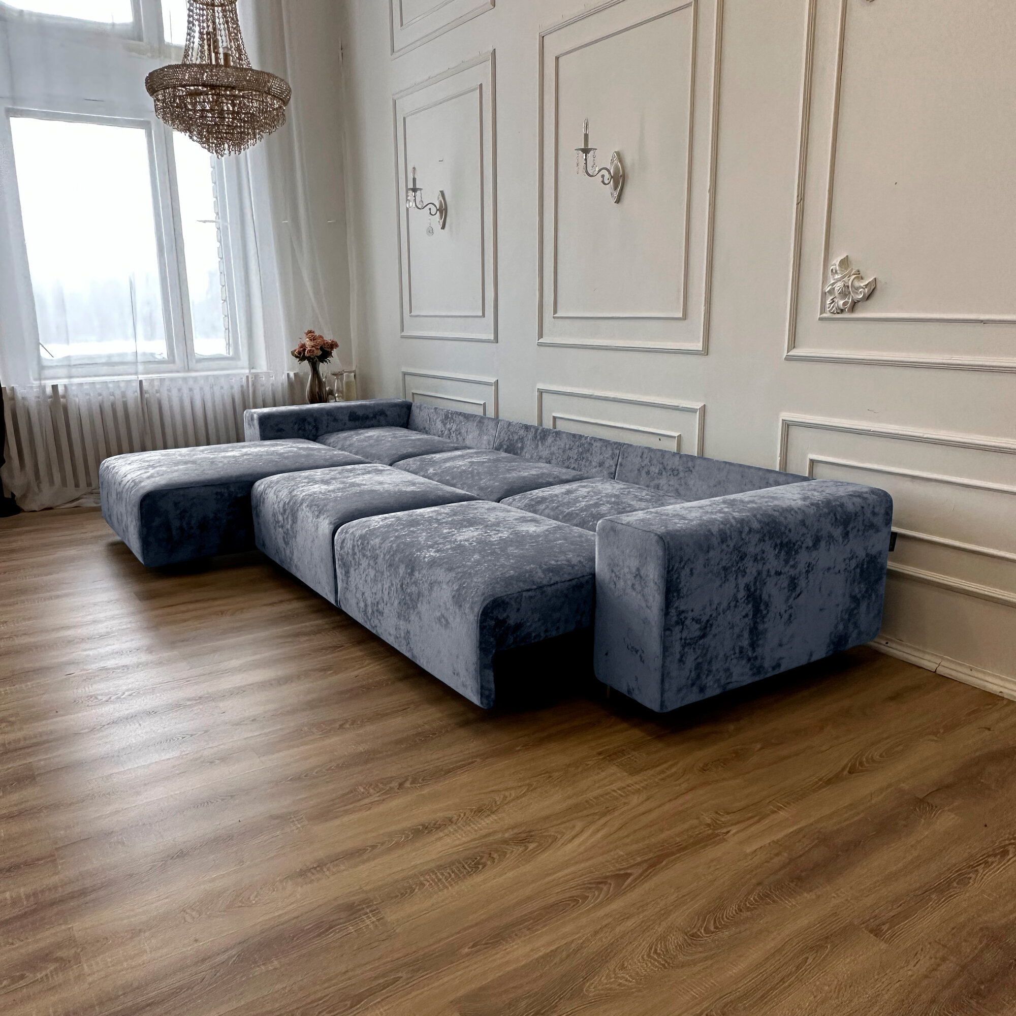 Диван-кровать Redsofa Аурис 360 см cеребристый Ocean. Раскладной угловой диван со съемными чехлами, для дома и офиса.