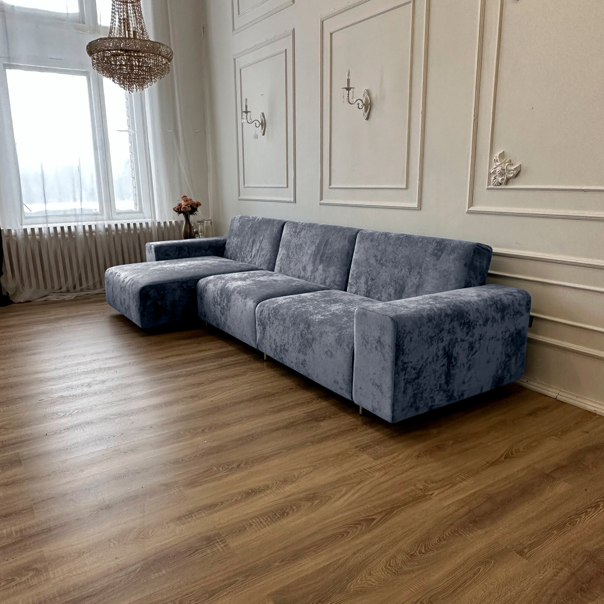 Диван-кровать Redsofa Аурис 360 см синий Teddi. Раскладной угловой диван со съемными чехлами Редсофа, для дома и офиса.