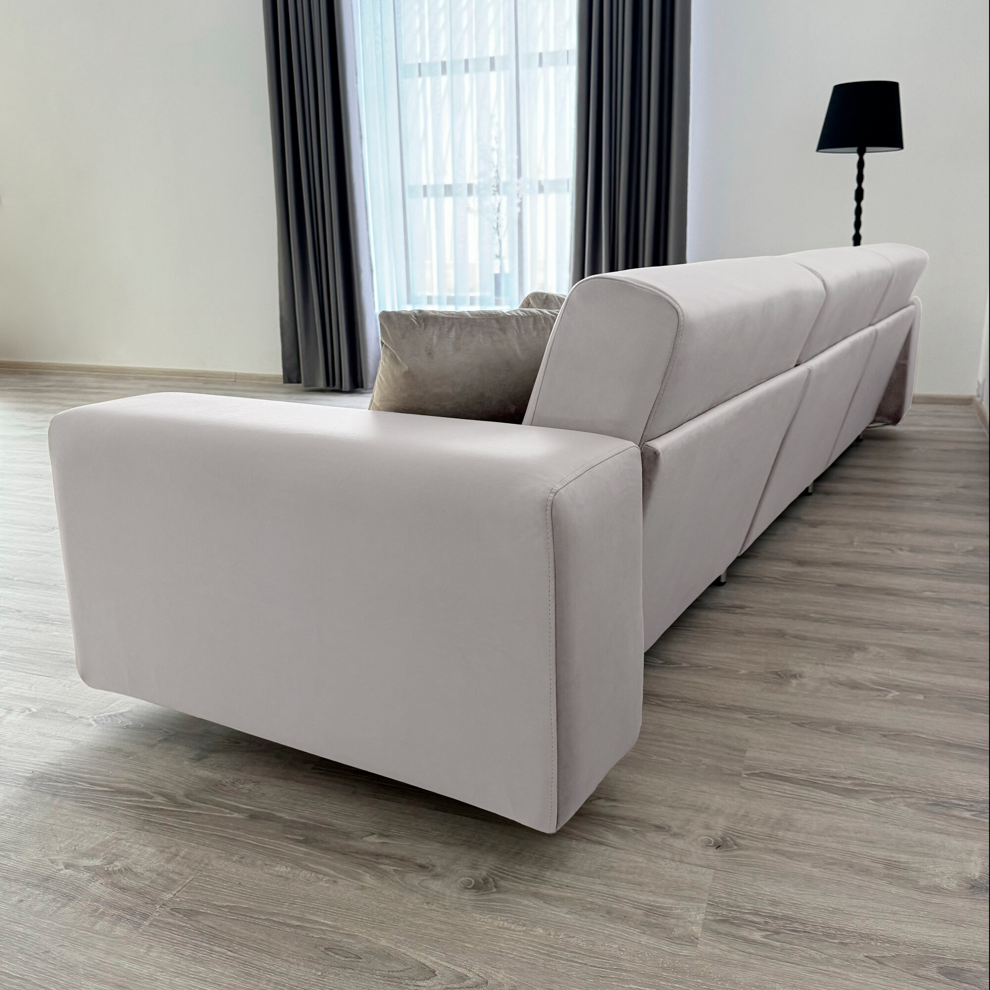 Диван-кровать Redsofa Аурис 360 см светло-серый Teddi. Раскладной угловой диван со съемными чехлами Редсофа, для дома и офиса (Мебельный гарнитур бытового назначения)