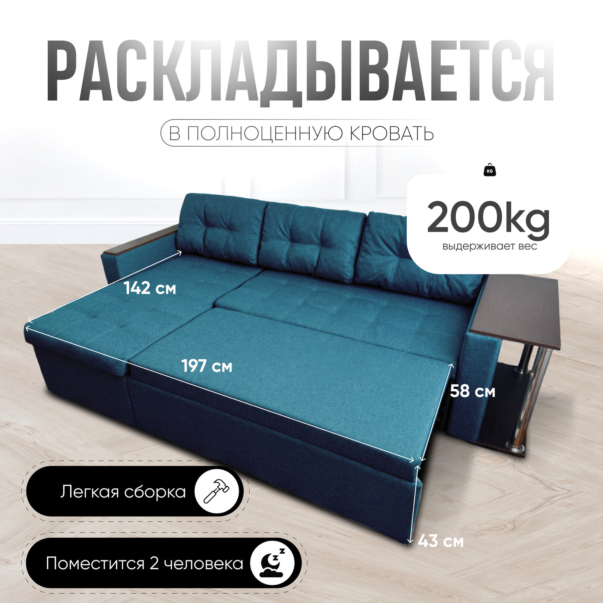 Купить Угловой диван-кровать Атланта со столиком, бирюзовый