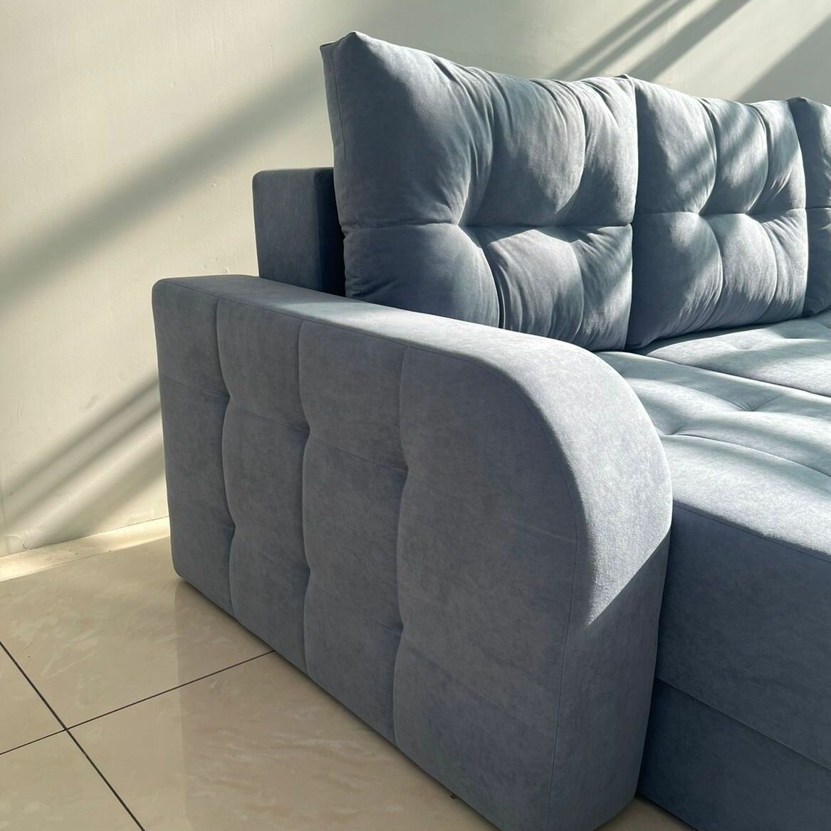 Купить угловой диван / диван-кровать угловой / велюр серо-голубой