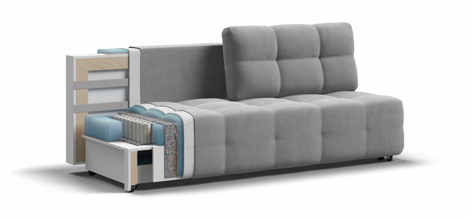 | Особенности | без подлокотников, раскладная конструкция, съемные подушки, ящик для белья |