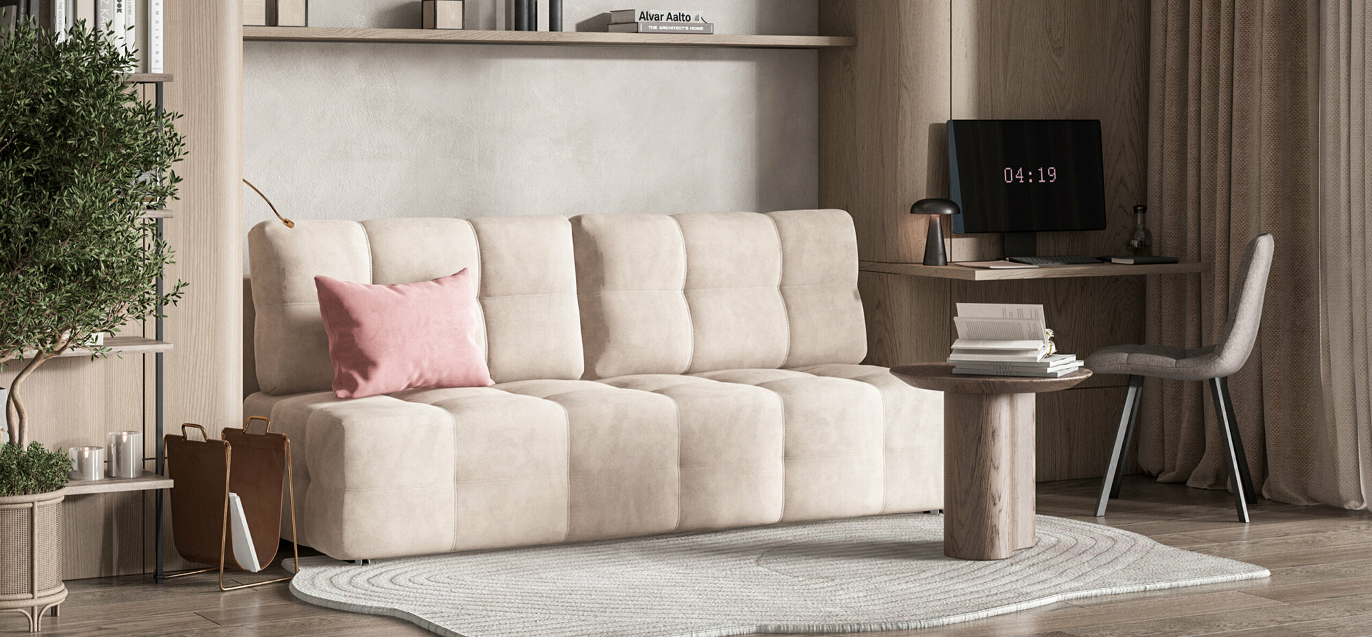 Диван-кровать с ящиком для хранения Dandy MINI SE, еврокнижка, велюр Monolit латте, 200x100x92 см