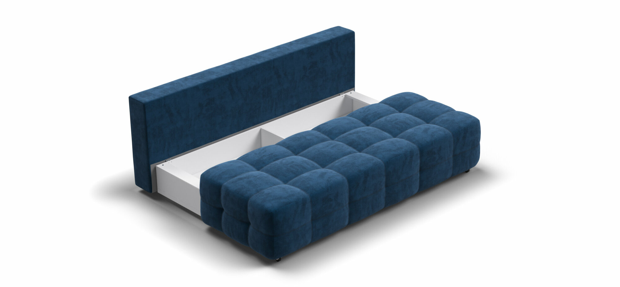 Купить Прямой диван-кровать с ящиком для хранения Dandy MINI SE велюр Monolit синий, 200x100x92 см