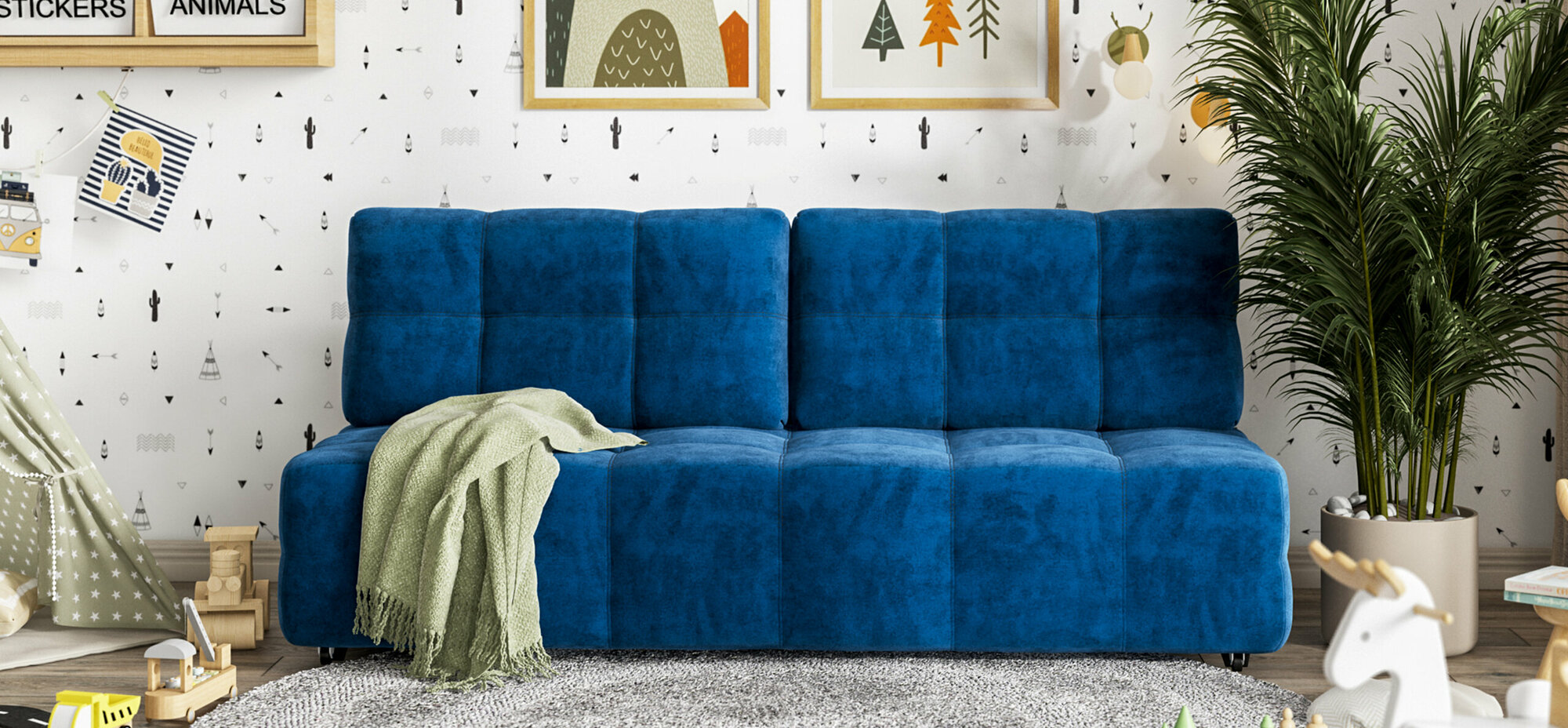 Прямой диван-кровать с ящиком для хранения Dandy MINI SE рогожка Mаlmo синий, 200x100x92 см