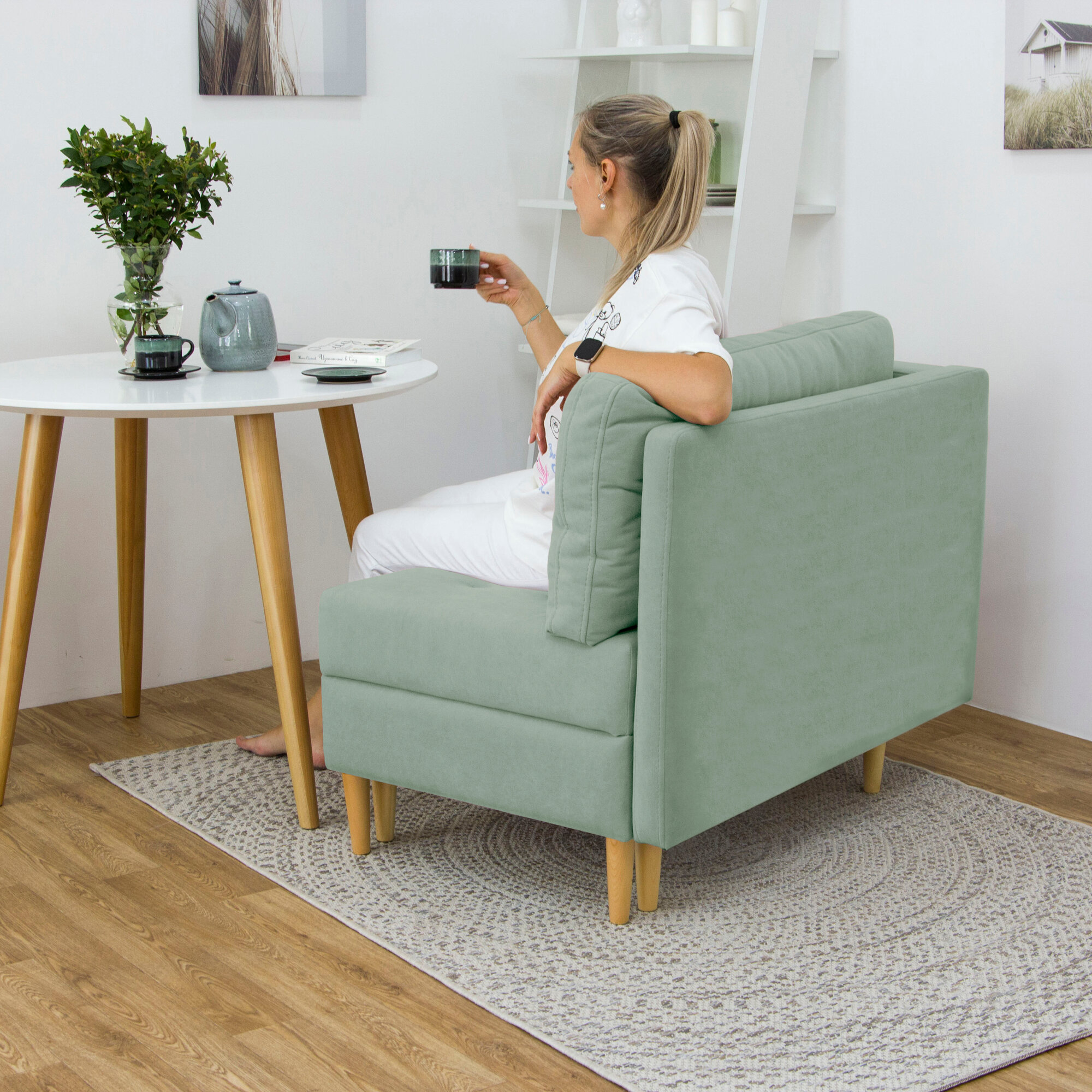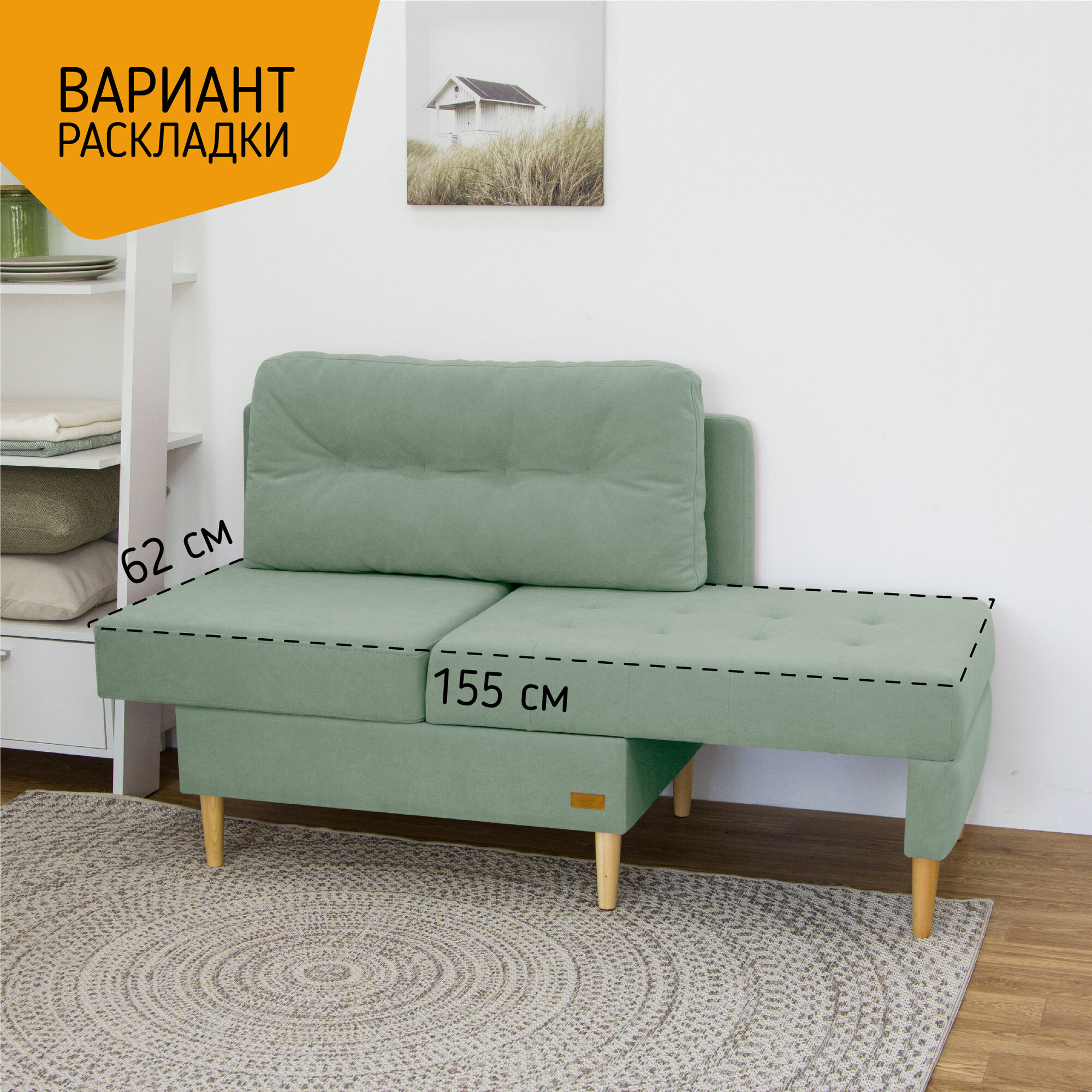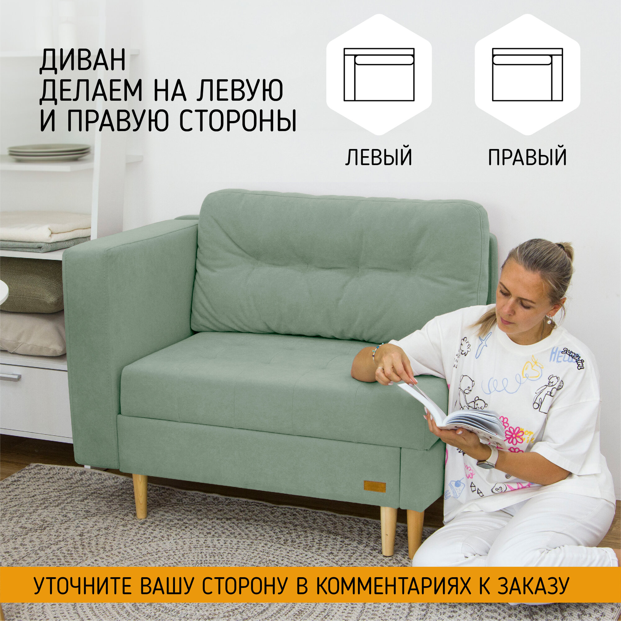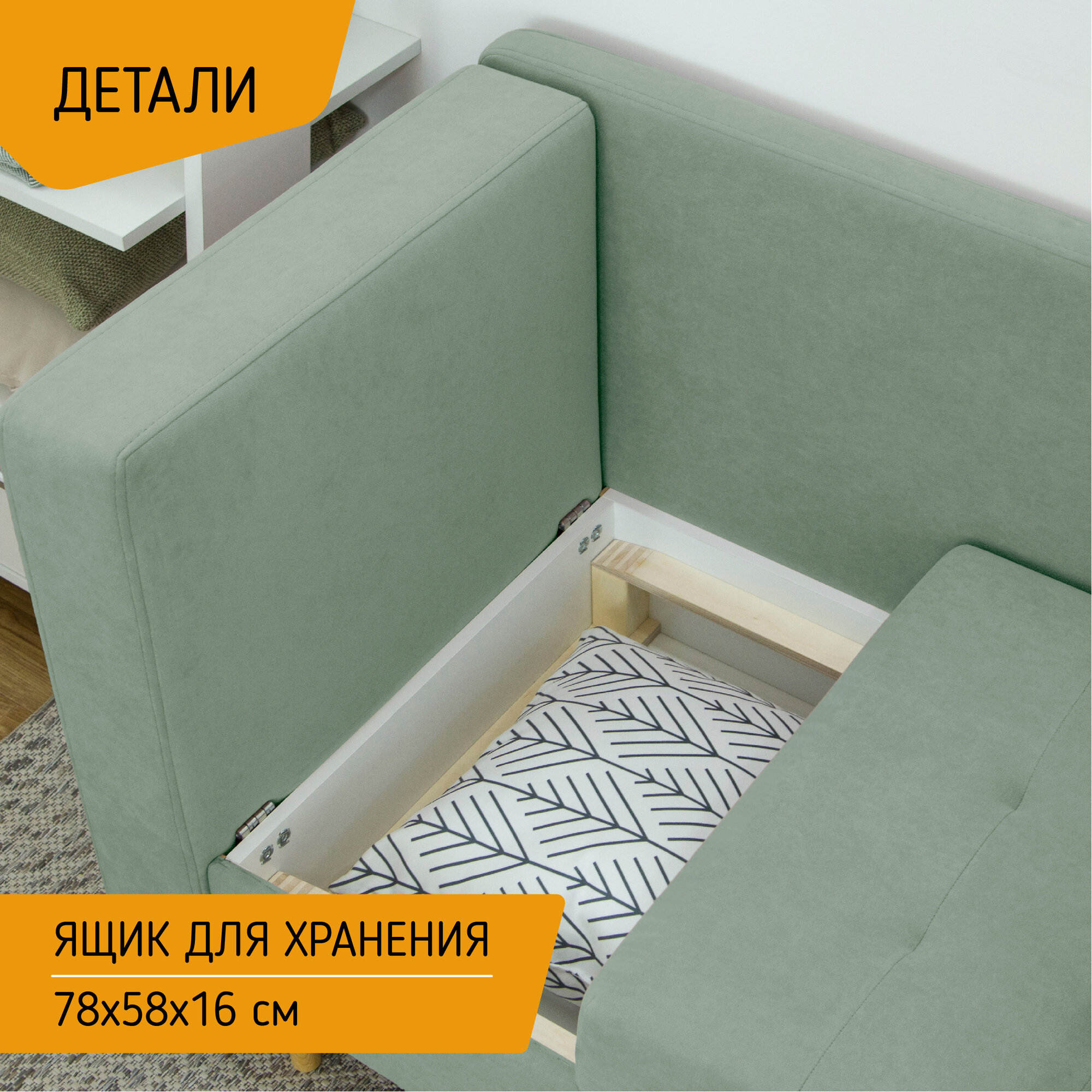 Купить Диван-кровать KRASDIVAN Чарли, размер 106х70 см, с ящиком для белья, велюр Delta 20 мятный
