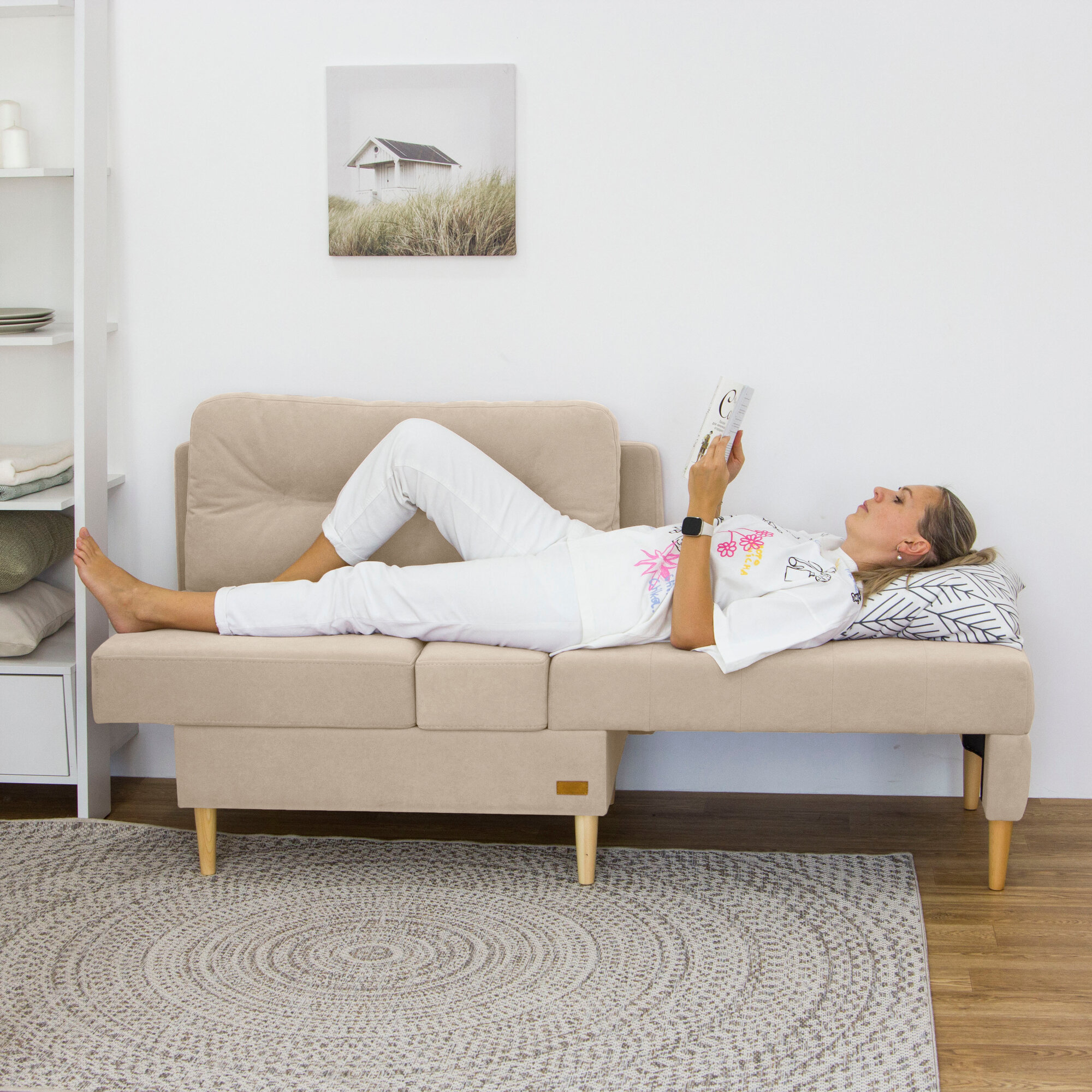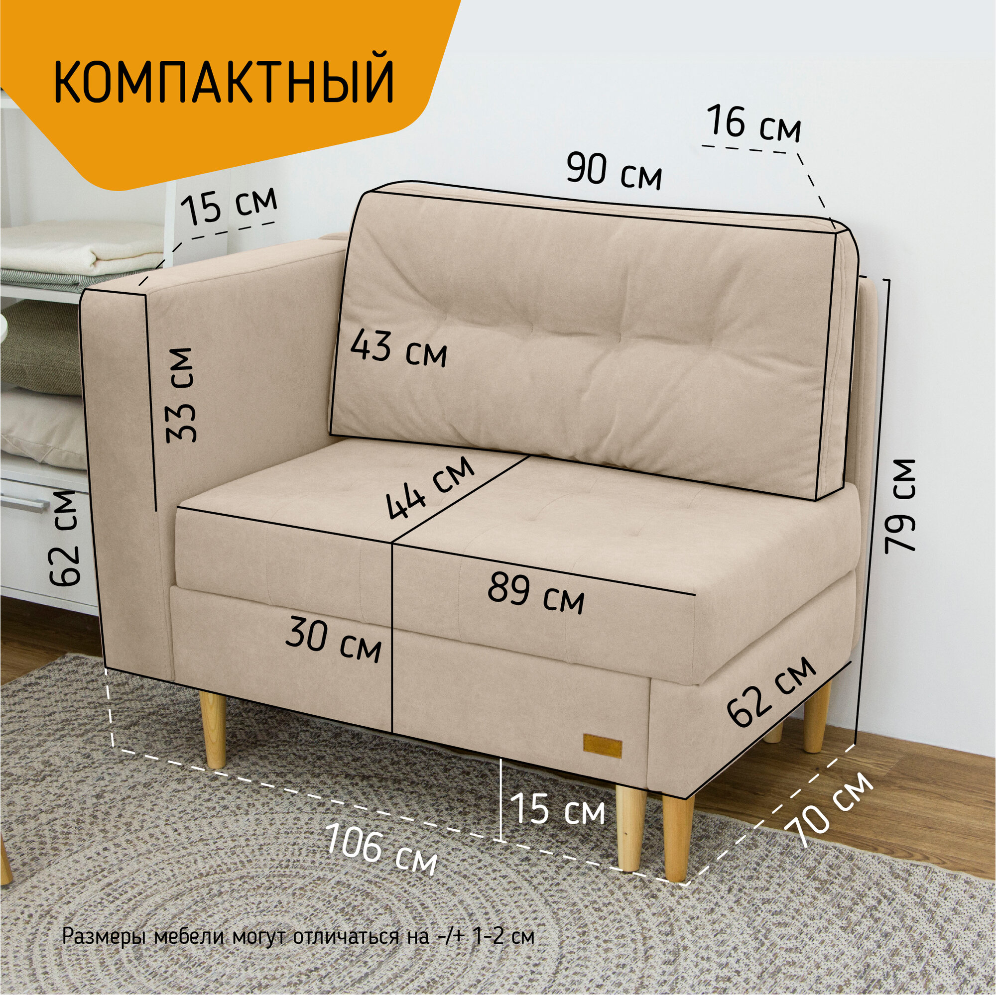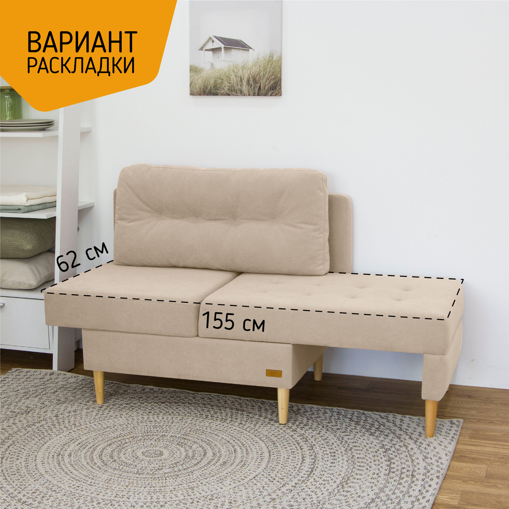 Диван-кровать KRASDIVAN Чарли, размер 106х70 см, с ящиком для белья, велюр Domino 2 бежевый