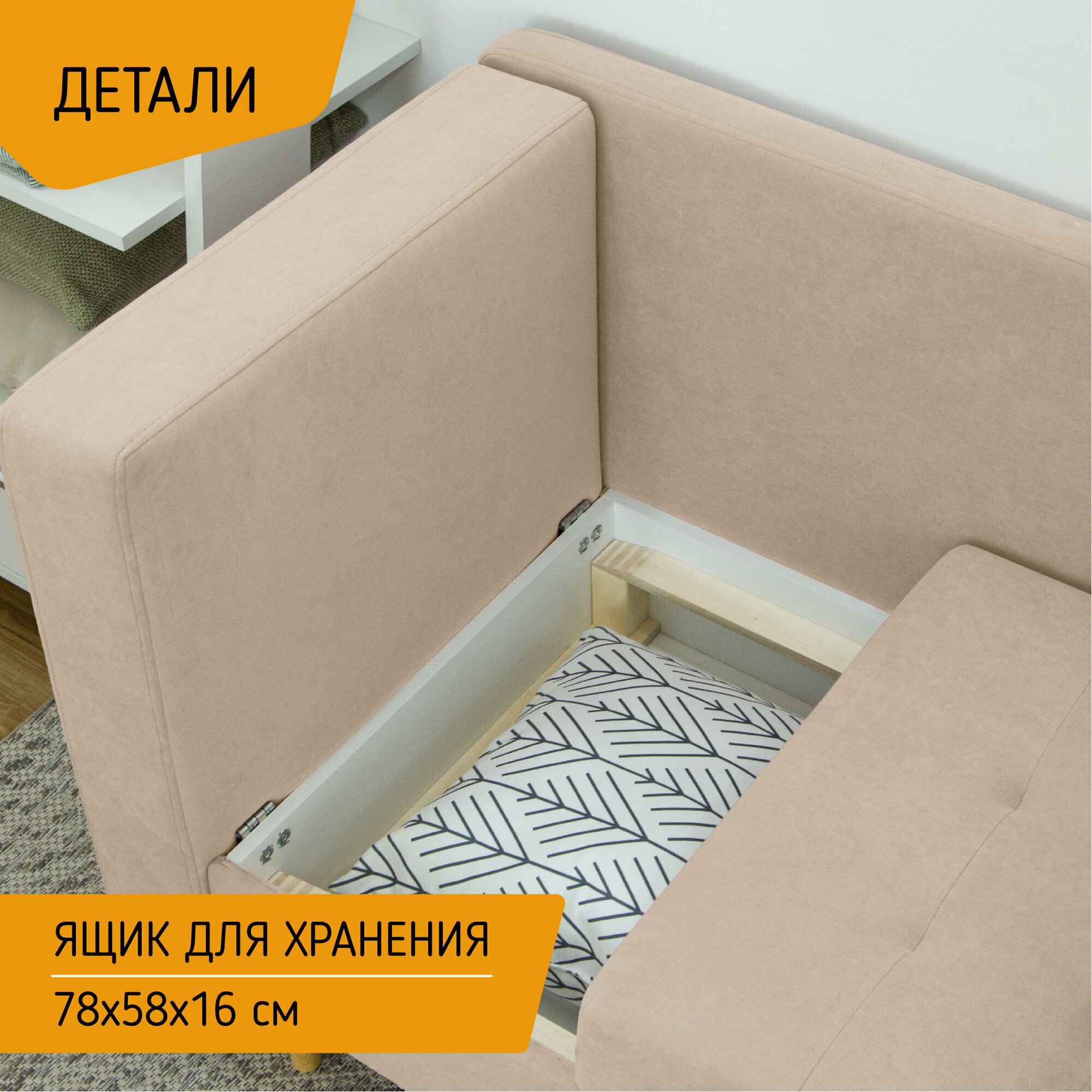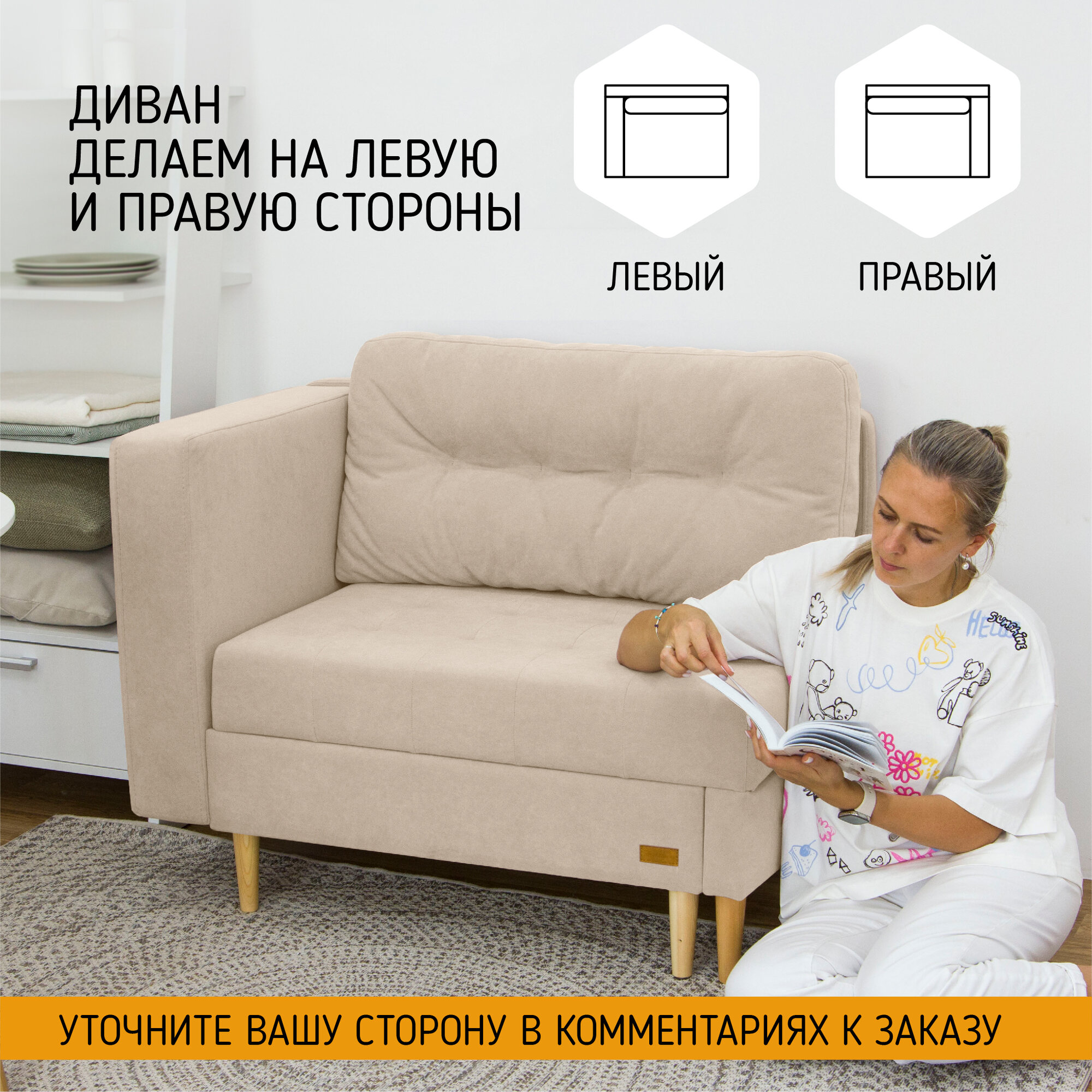 Купить Диван-кровать KRASDIVAN Чарли, размер 106х70 см, с ящиком для белья, велюр Domino 1 светло-бежевый