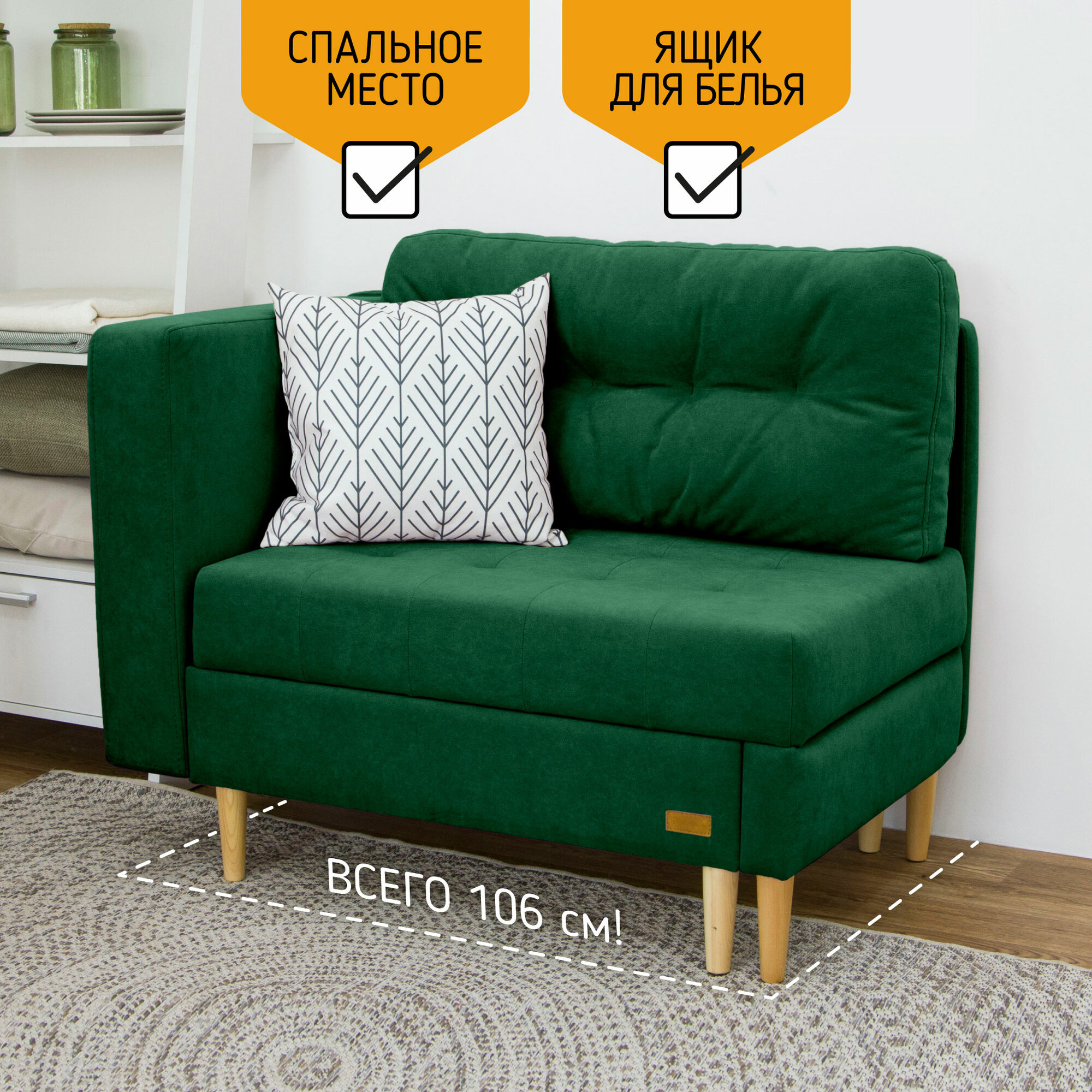 Купить Диван-кровать KRASDIVAN Чарли, размер 106х70 см, с ящиком для белья, велюр Domino 17 зеленый