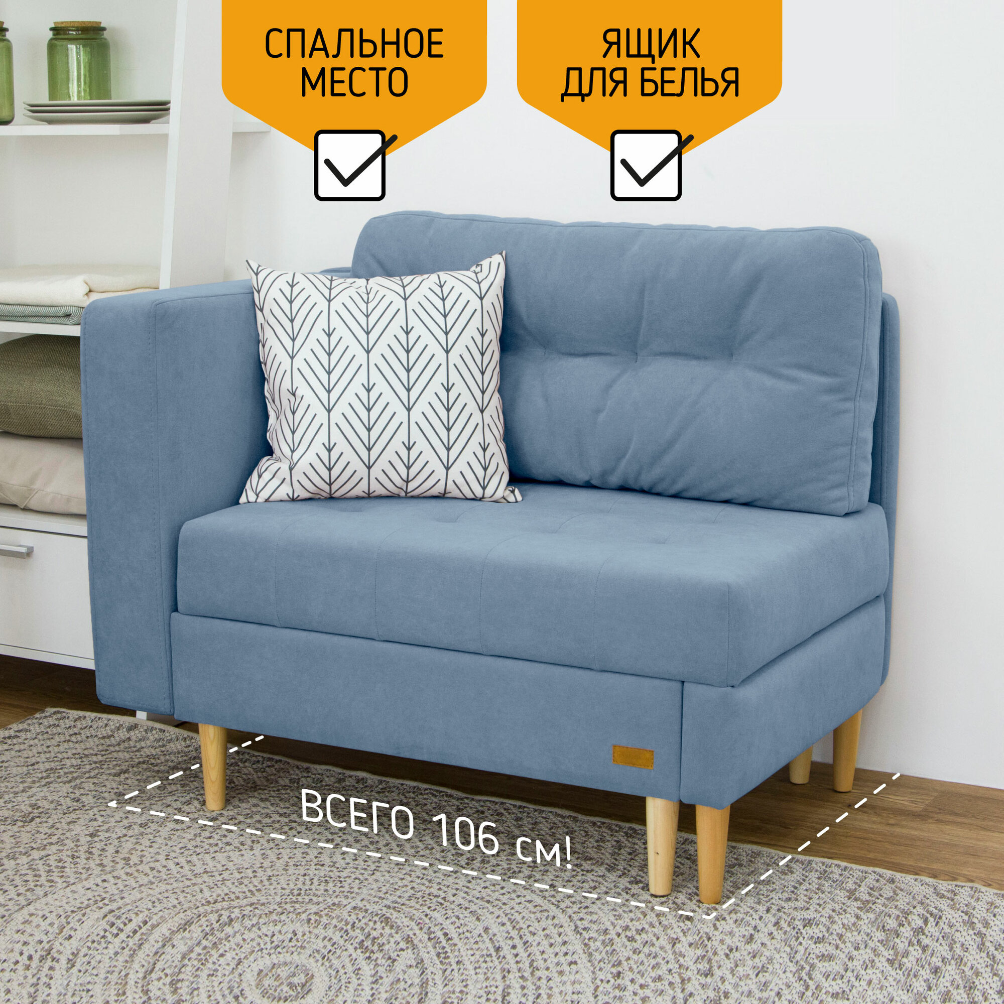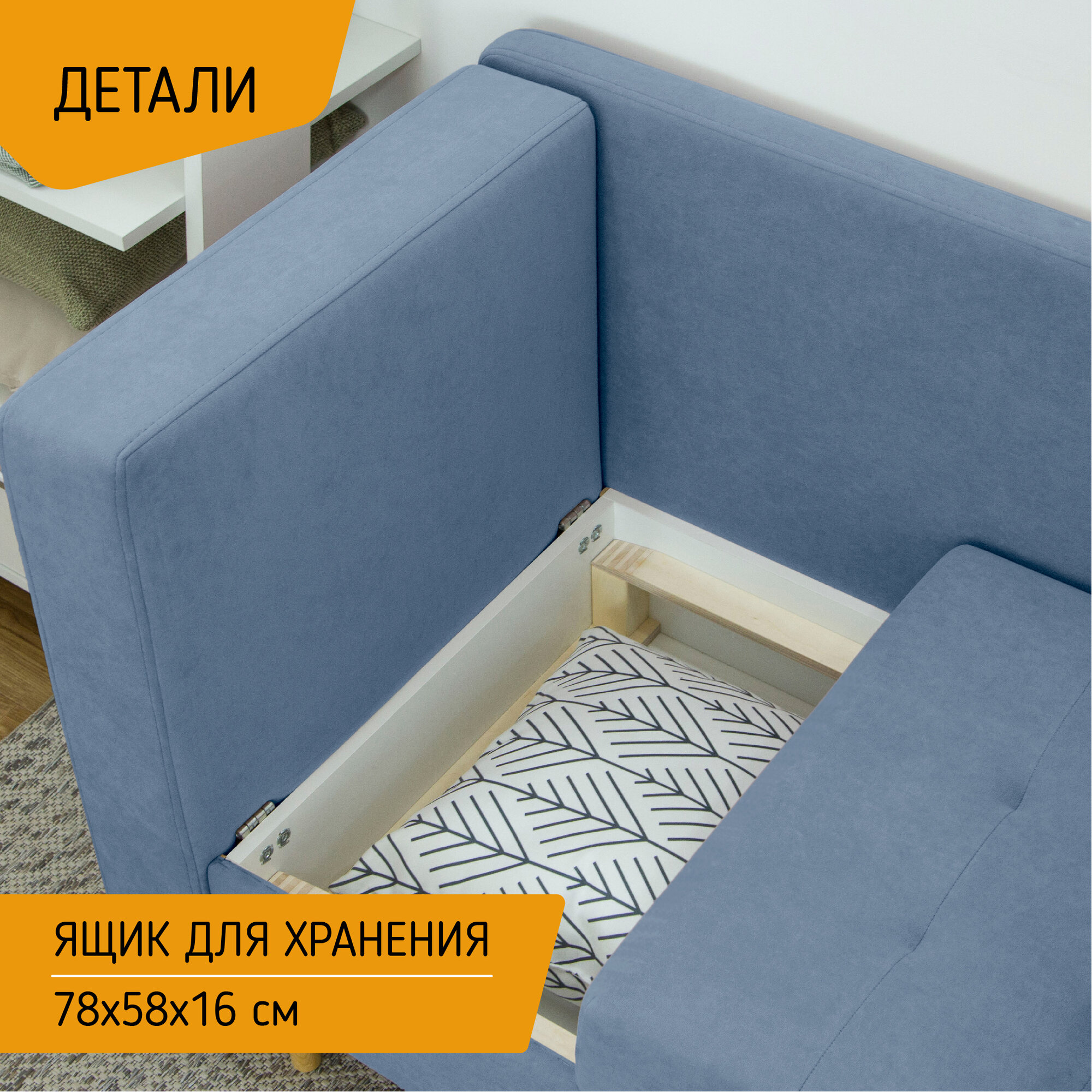 Купить Диван-кровать KRASDIVAN Чарли, размер 106х70 см, с ящиком для белья, велюр Domino 11 голубой