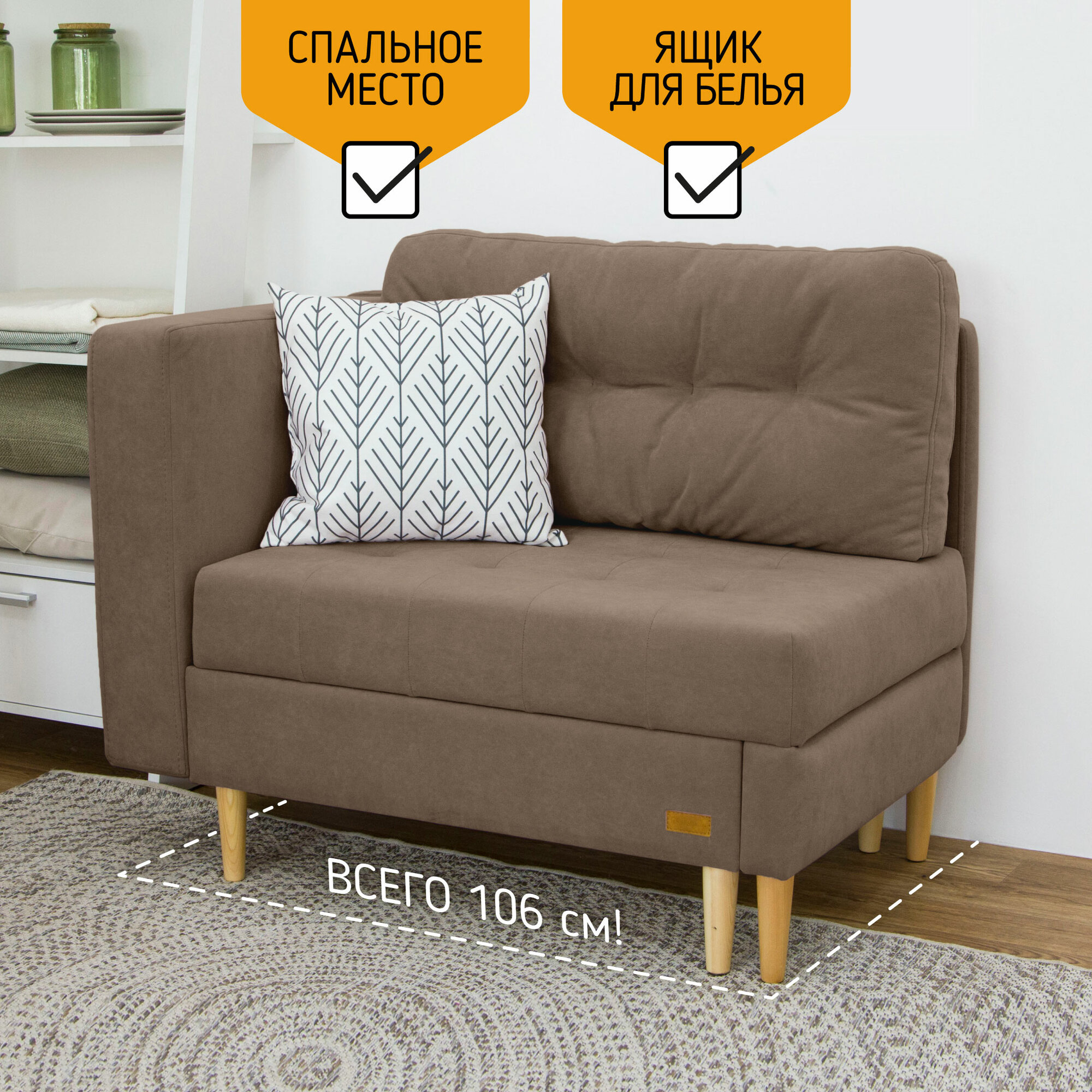 Купить Диван-кровать KRASDIVAN Чарли, размер 106х70 см, с ящиком для белья, велюр Domino 3 светло-коричневый