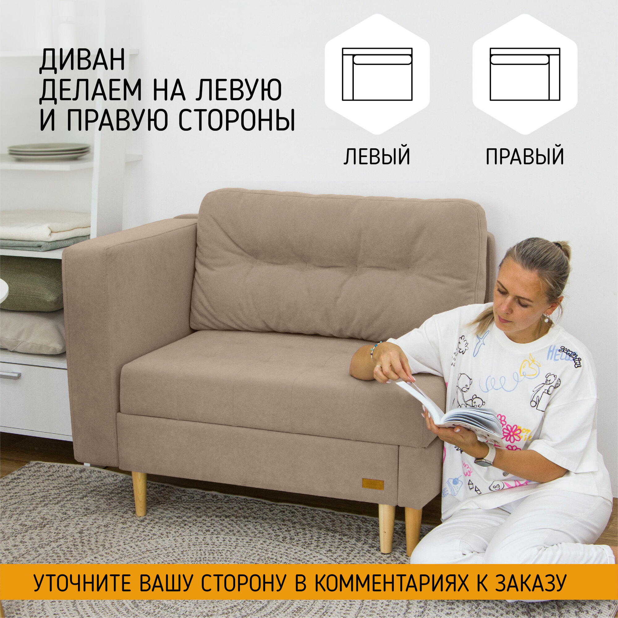 Диван-кровать KRASDIVAN Чарли, размер 106х70 см, с ящиком для белья, велюр Domino 3 светло-коричневый