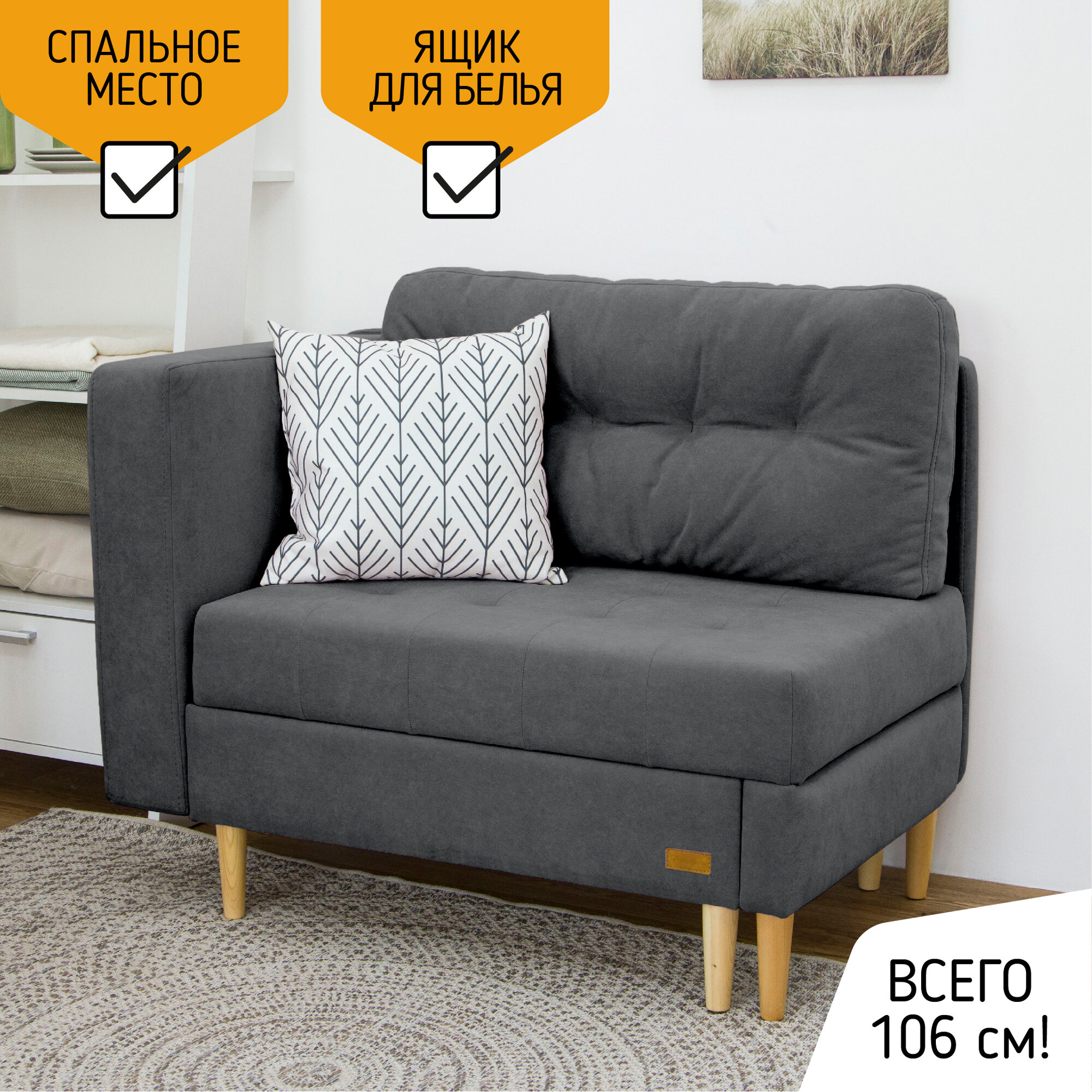 Купить Диван-кровать KRASDIVAN Чарли, размер 106х70 см, с ящиком для белья, велюр Domino 9 темно-серый