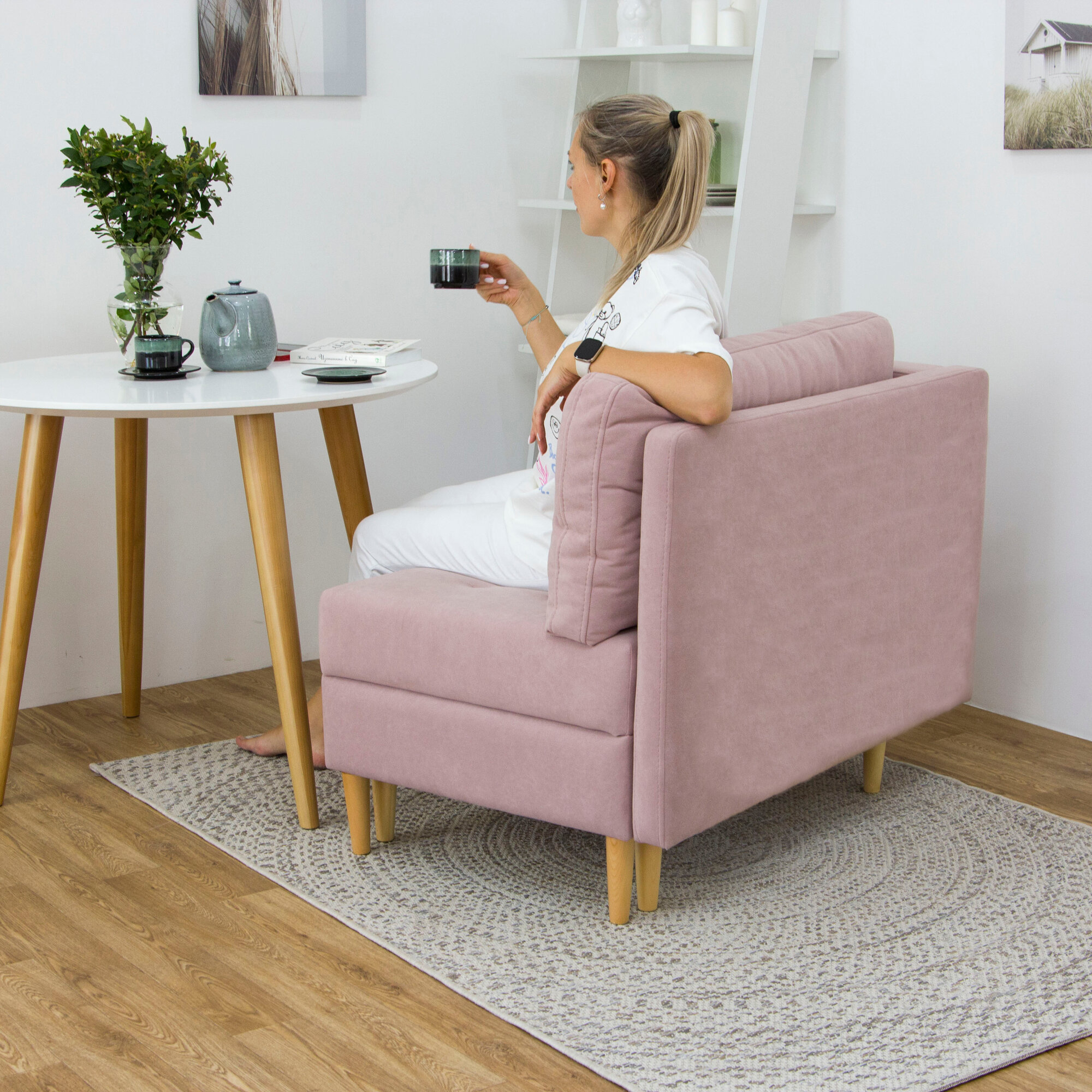 Купить Диван-кровать KRASDIVAN Чарли, размер 106х70 см, с ящиком для белья, велюр Delta 33 розовый