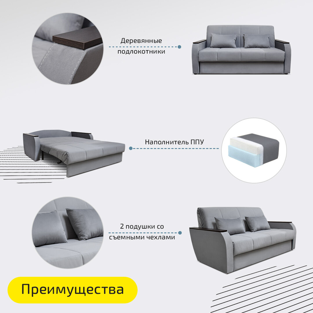 | Дополнительная информация | Съемный чехол; подлокотники с деревянными вставками; спальное место 195х140 см |