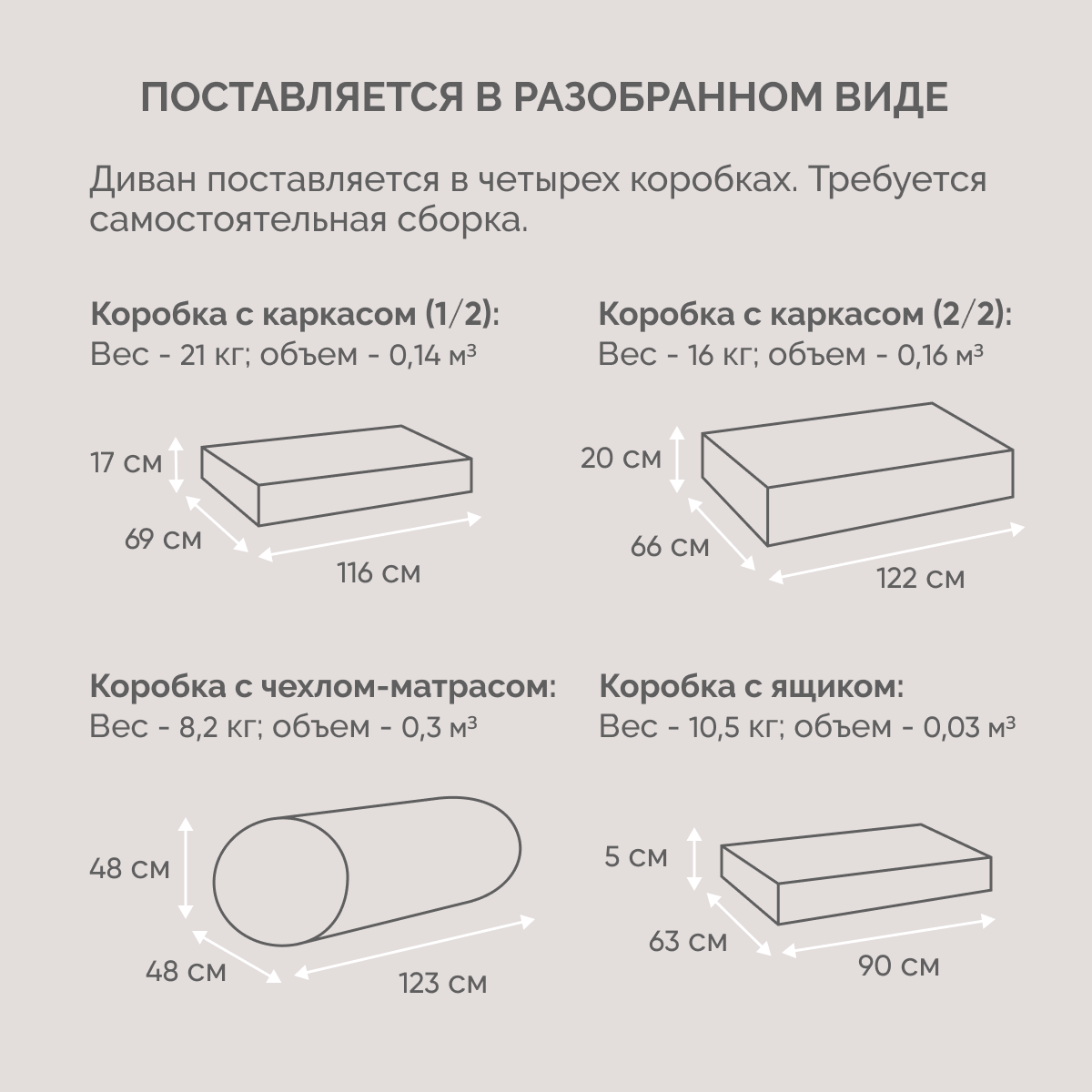 | Особенности | без подлокотников, раскладная конструкция, ящик для белья |
