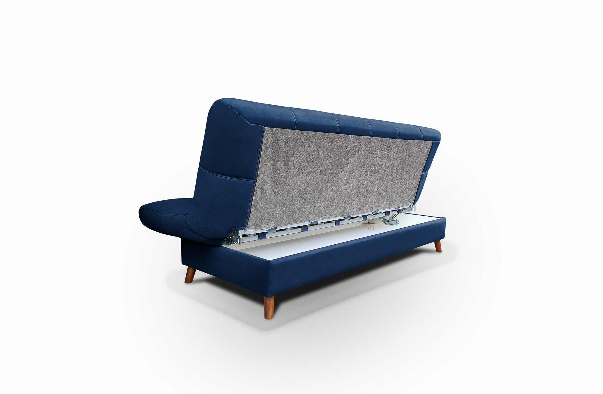 Стоун-прямой раскладной диван кровать(синий)со спальным местом с подушками с ящиком для хранения, без подлокотников, механизм клик-кляк, 200х93х99 см